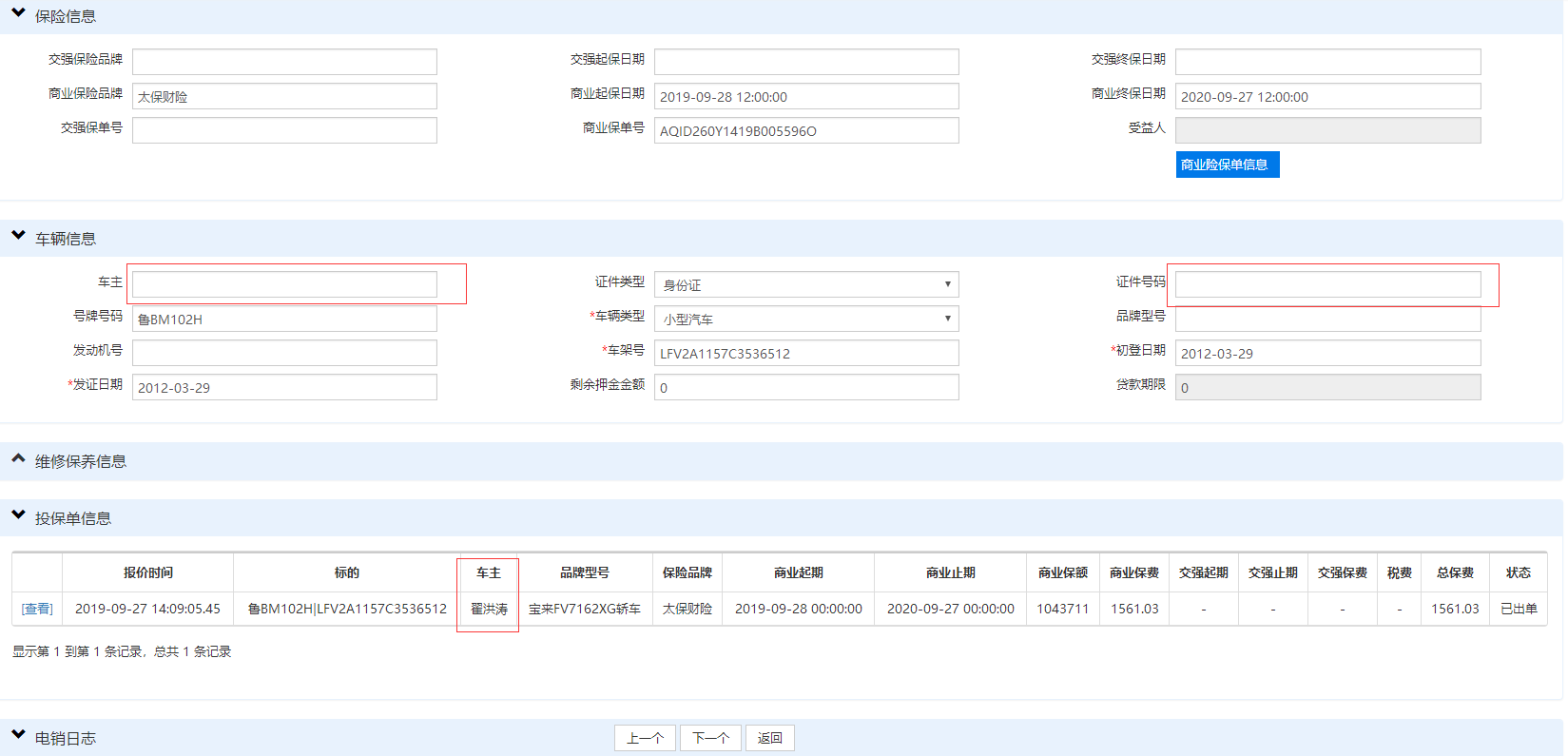 电销客户管理编辑界面,存在电销客户数据,下载该客户数据保单,编辑页面车辆信息未更新