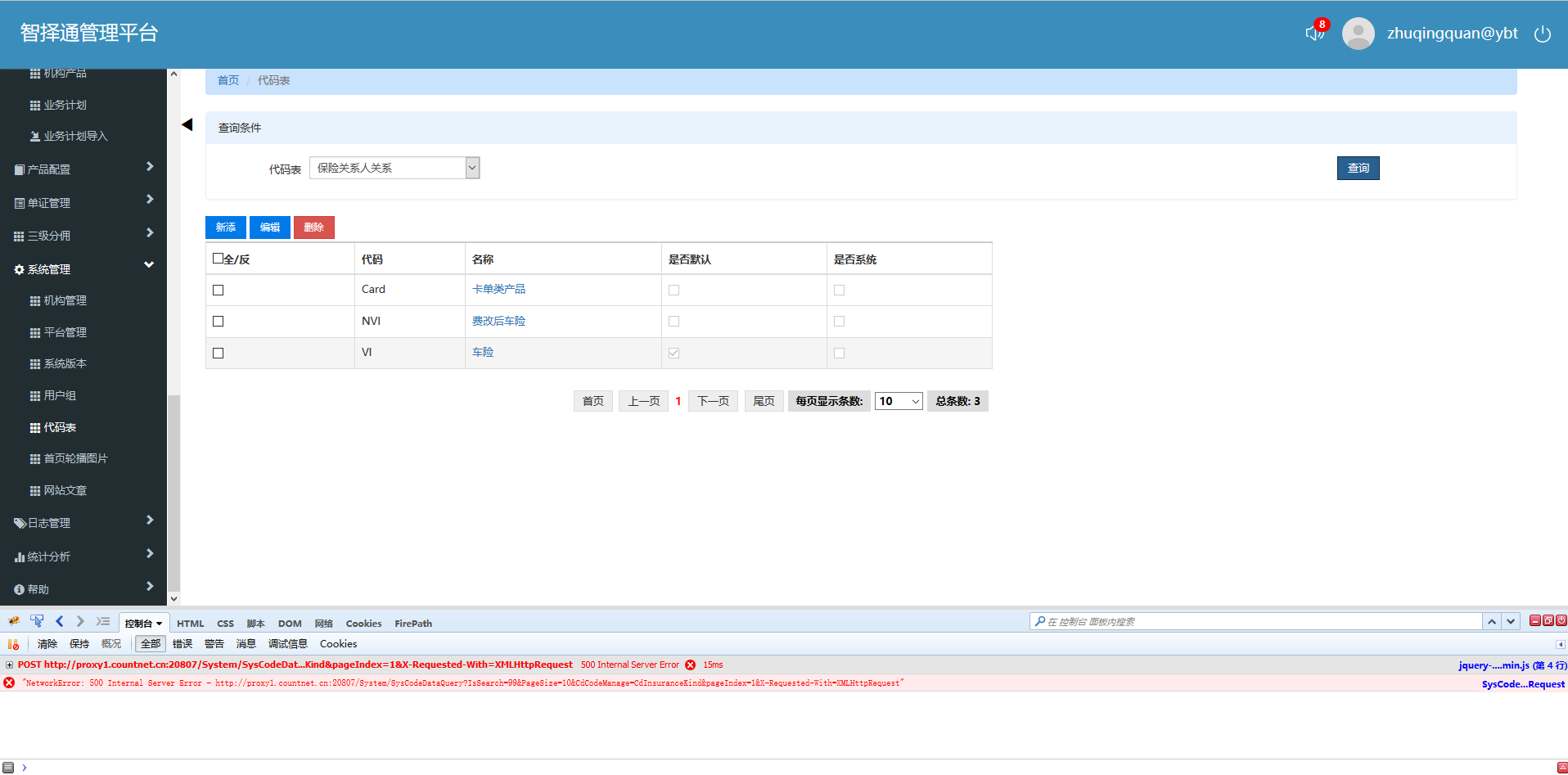 【测试环境】系统管理-代码表,查询条件选择保险关系人关系,点击查询报错。