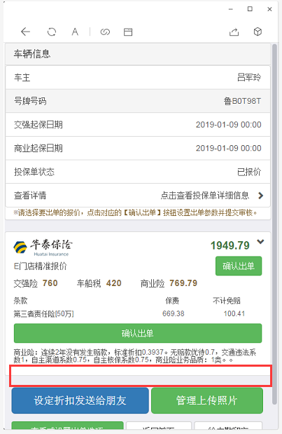 在显示车险报价完成页面底部(如下图报价完成),不管是从管理系统推送已报价消息提醒的报价完成页面,还是微信端自动报价显示报价结果的页面,只要是显示车险价格的这个页面,都需要添加非车险产品推荐列表。显示那些非车险产品需要在管理系统的系统管理—机构产品管理功能中,添加一列‘车险报价推荐’功能,如果勾选了车险报价推荐就在车险报价完成页面底部根据产品的序列号依次显示出勾选的产品。当前功能允许管理员操作。