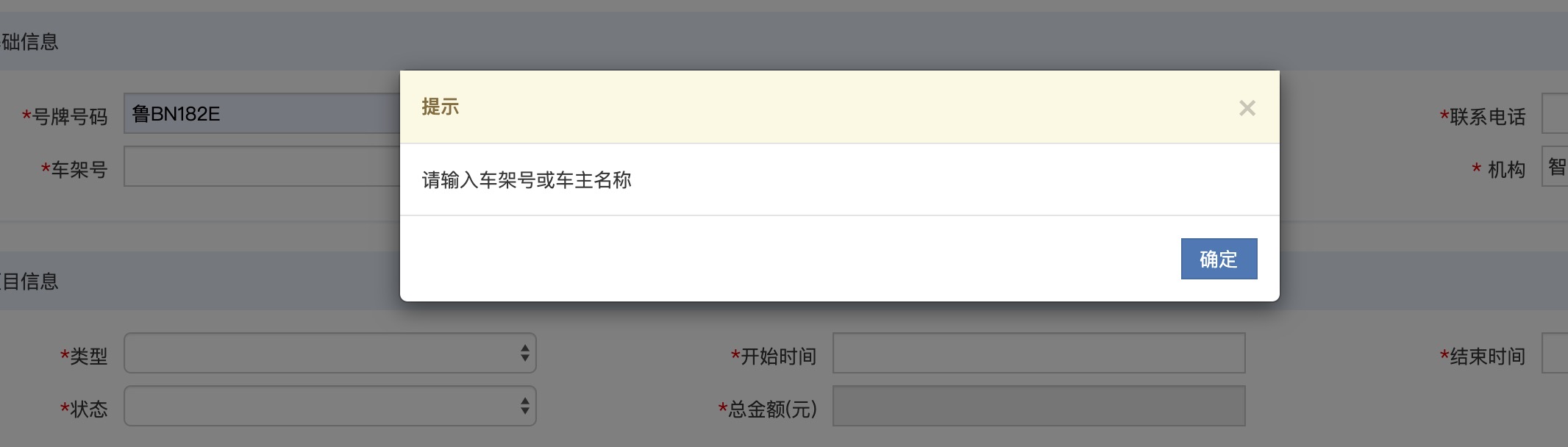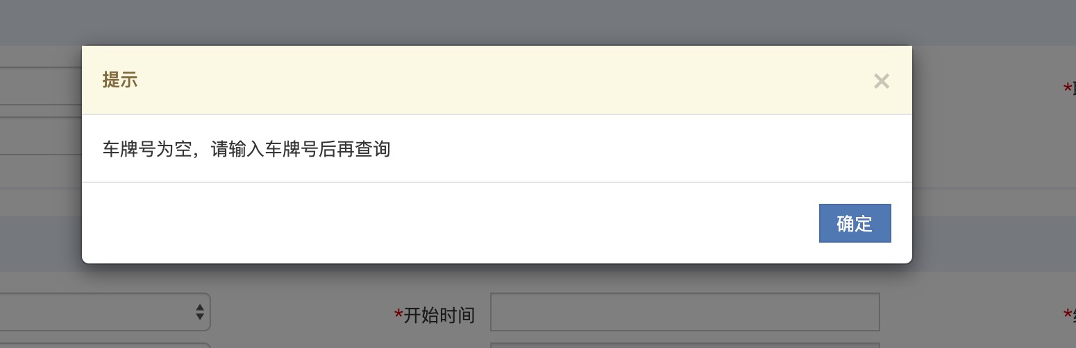 操作:1、未输入号牌号码、车架号、车主姓名,点击查询