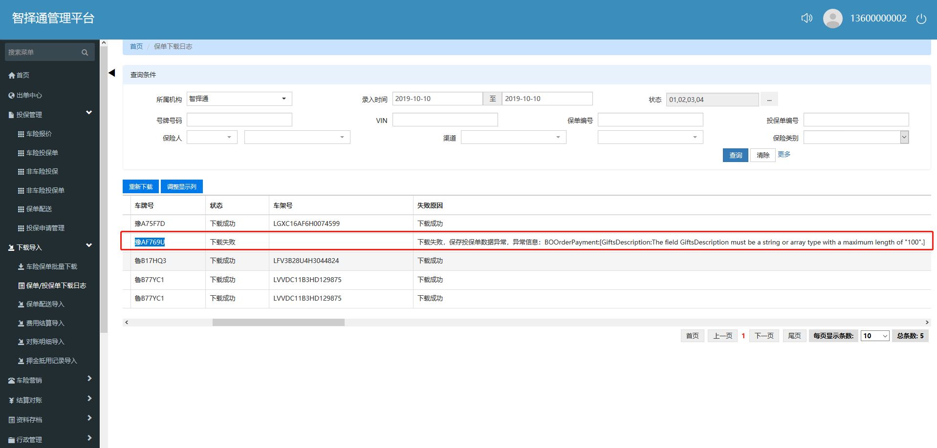 【出单中心2.0-人保电销】便捷下载投保单,选择多个礼品后下载,在管理系统中下载失败:保存投保单数据异常,异常信息:BOOrderPayment:[GiftsDescription:The field GiftsDescription must be a string or array type with a maximum length of "100".]