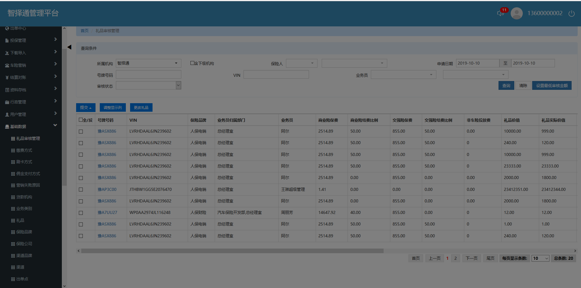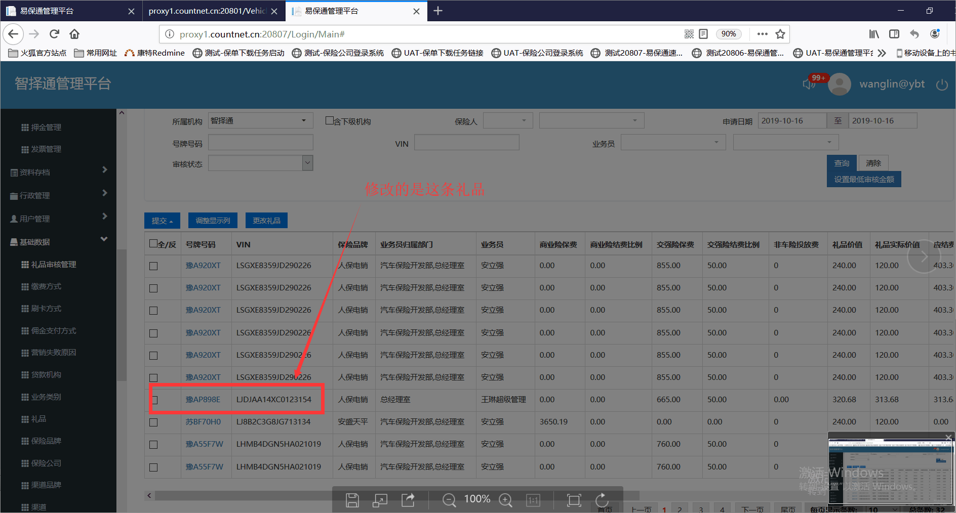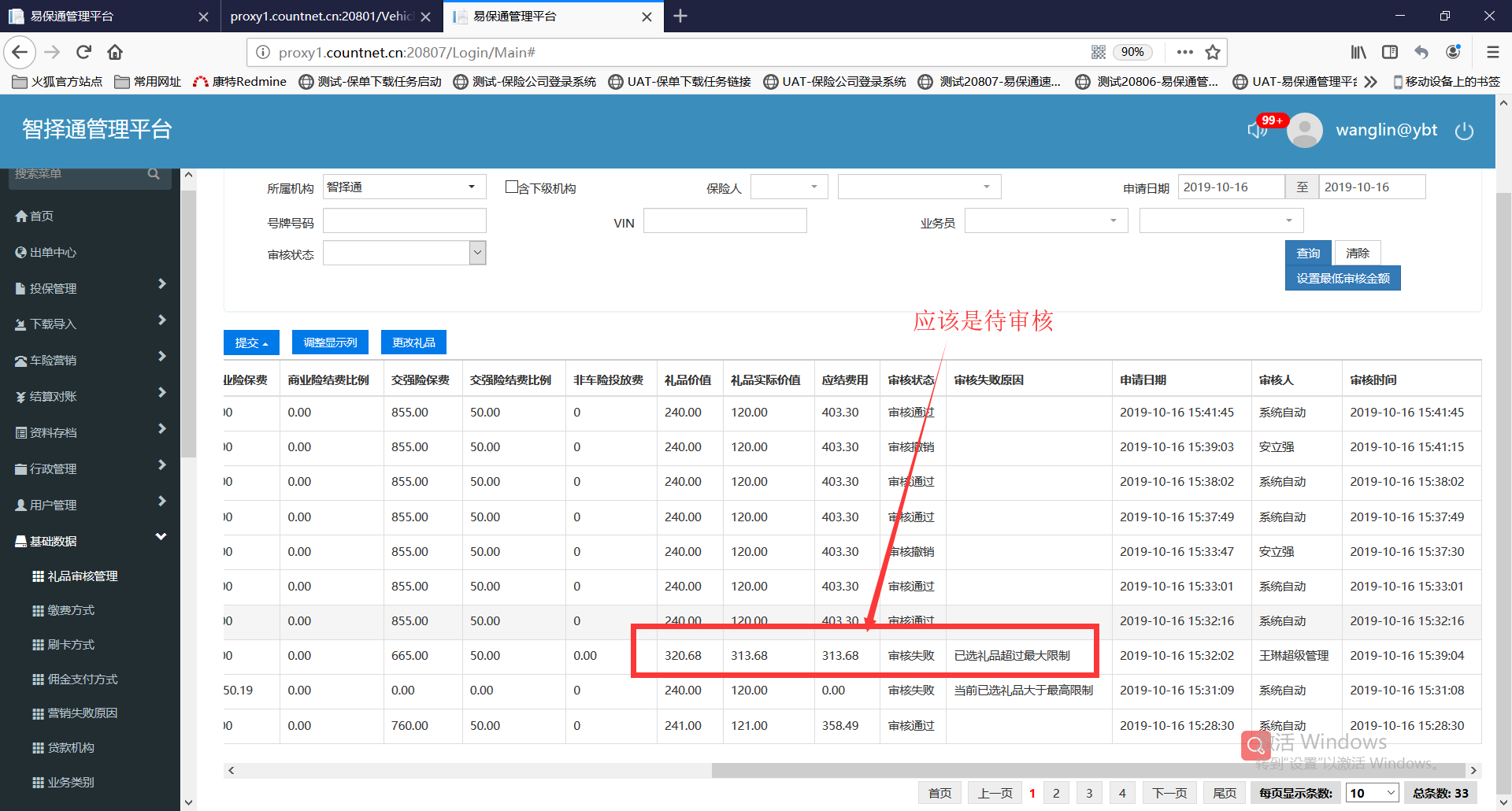 【出单中心2.0-人保电销】在礼品审核管理中更改审核失败的数据,更改为待审核,点击确定后整个界面无法操作。