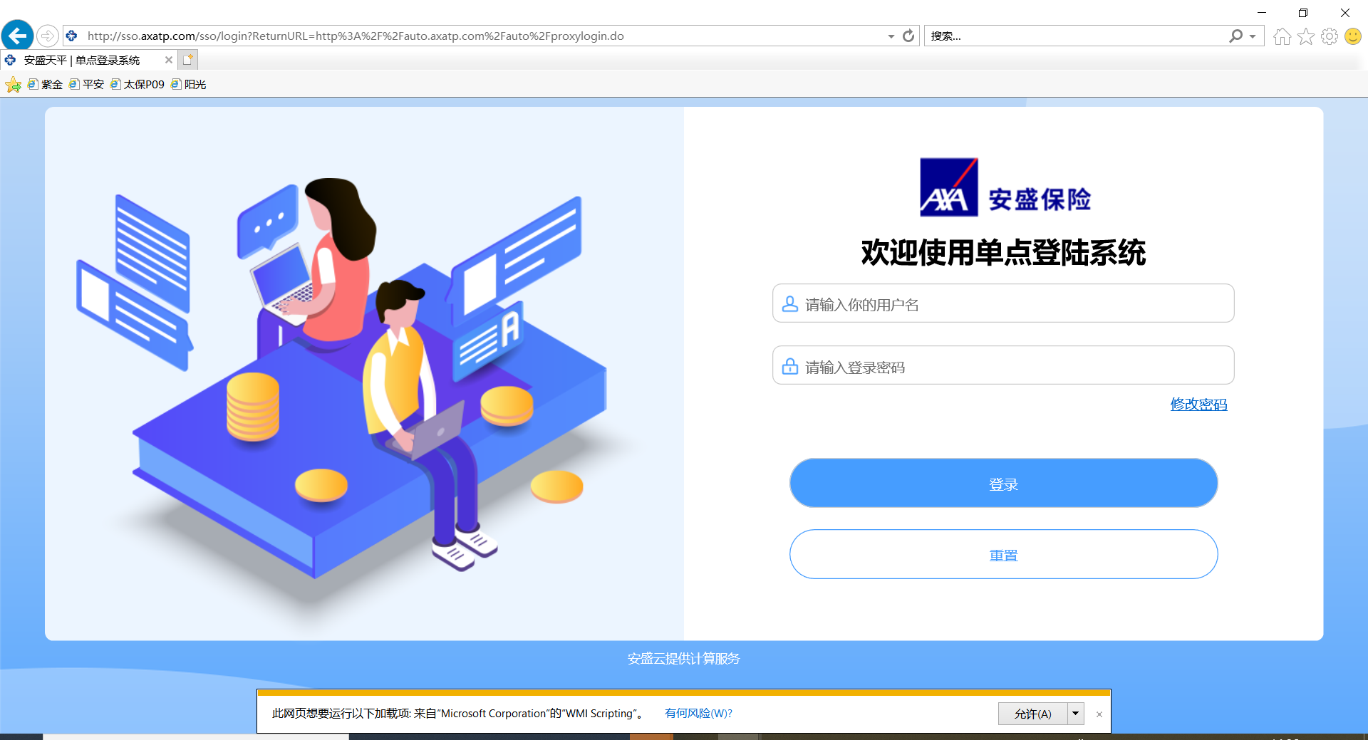 描述:在出单中心内打开安盛天平系统时系统会提示报错,如截图所示,在网页中直接打开安盛天平系统能够正常使用如截图所示