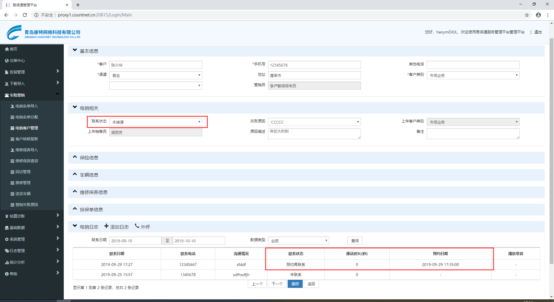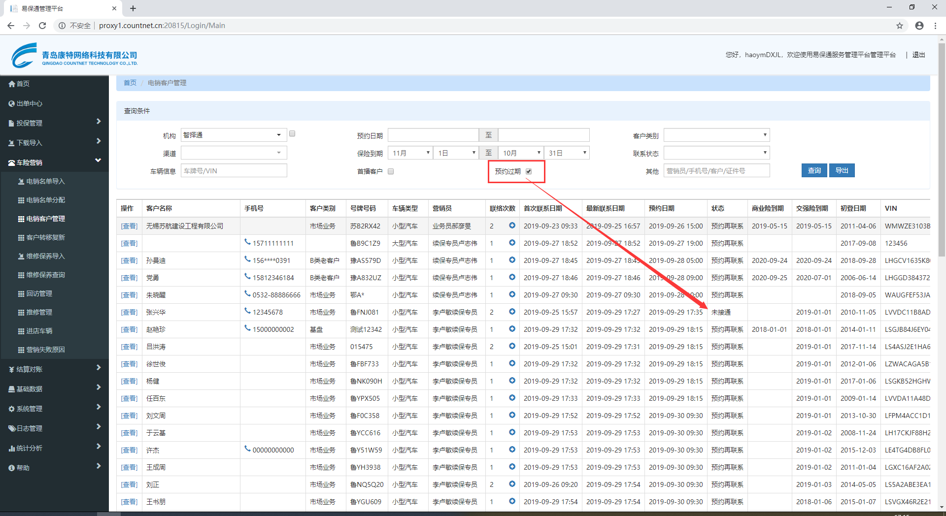 【电销管理】电销客户管理,勾选预约过期查询出来其他联系状态的名单数据