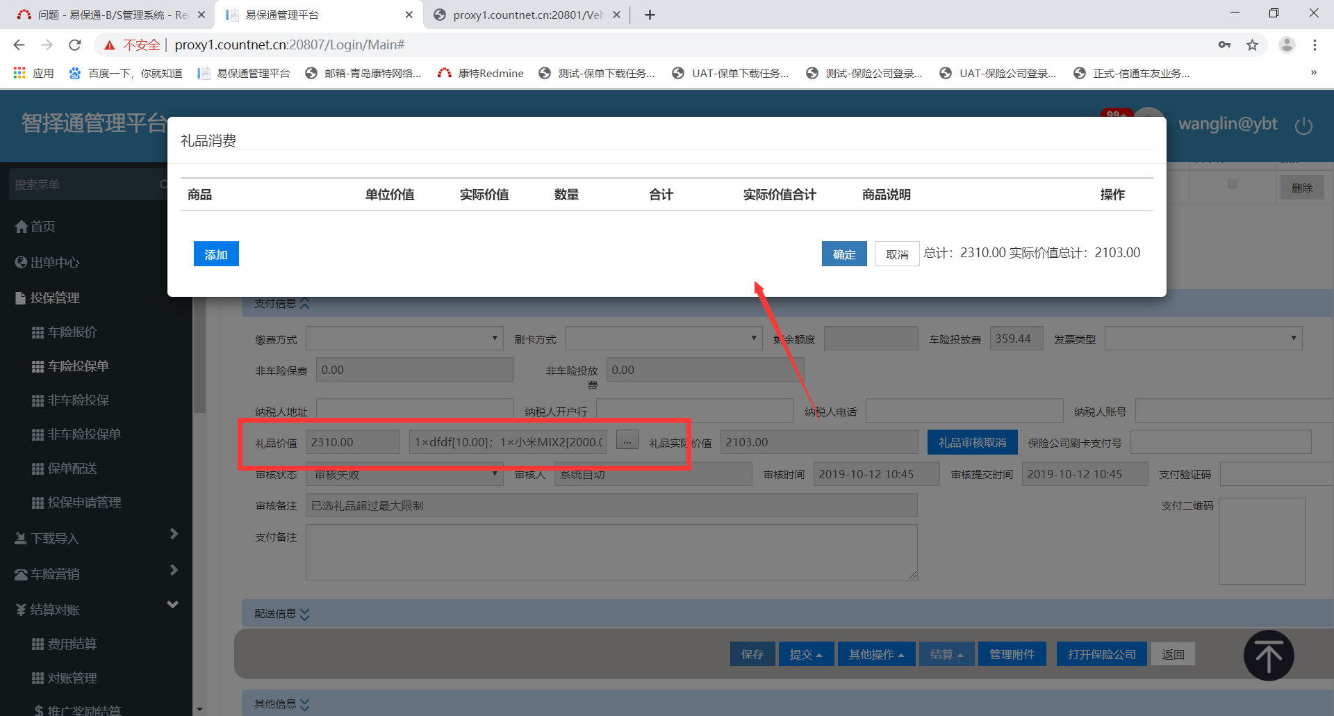 【出单中心2.0-人保电销】便捷下载保单时,选择的礼品审核失败了,进入投保单内编辑礼品,礼品弹窗显示空