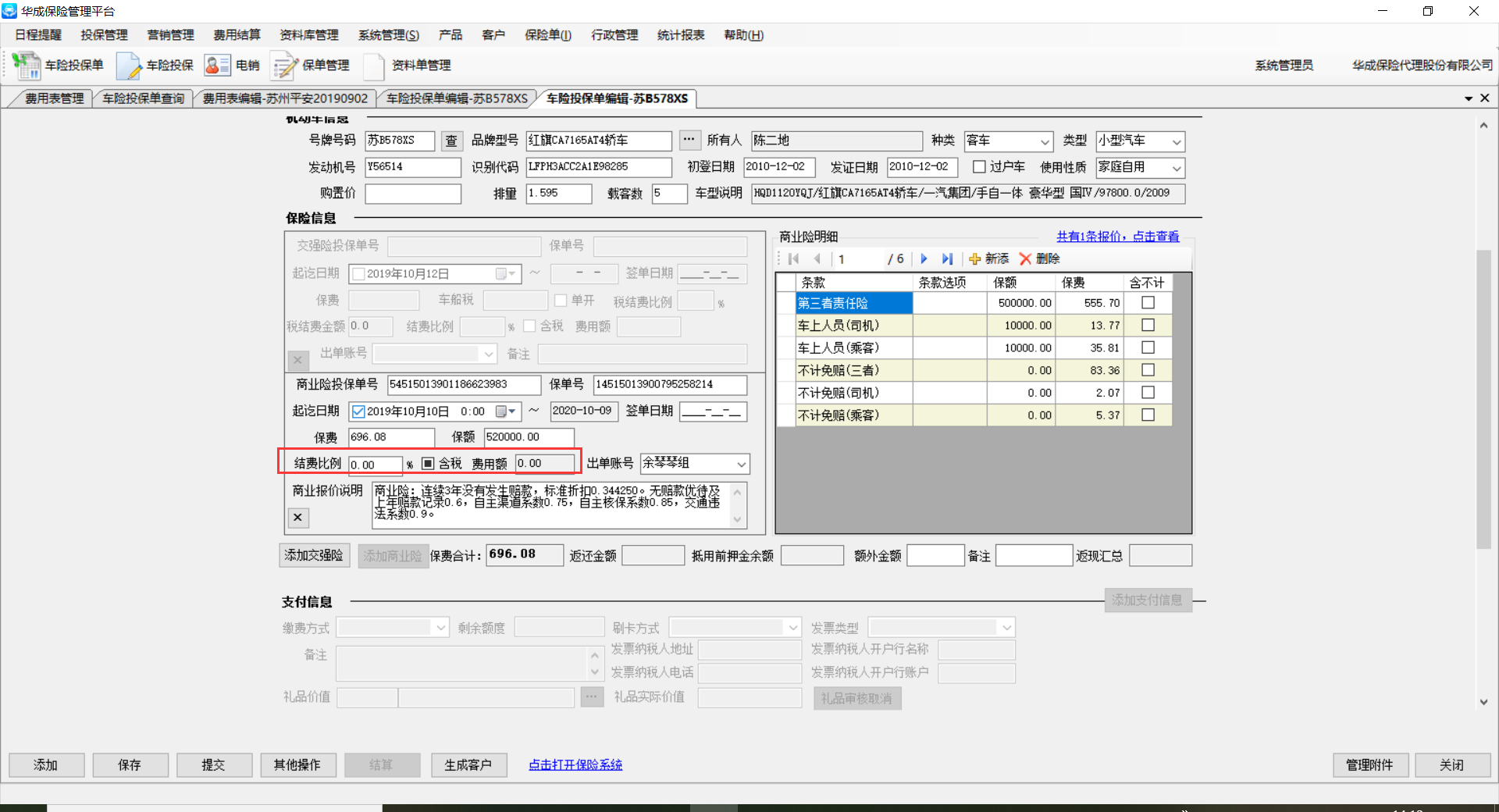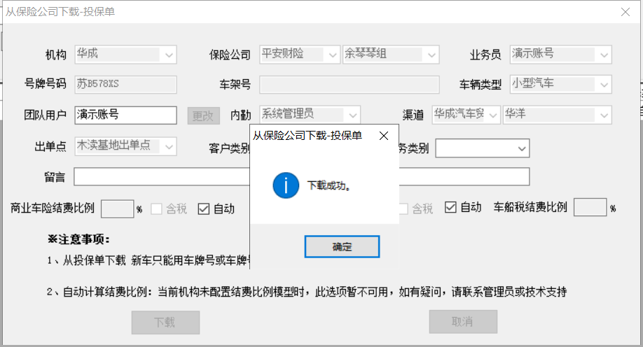 描述:上述车下载投保单时应该匹配费用政策内结费比例为“23”的政策,但是下载生成的投保单商业险比例显示为0