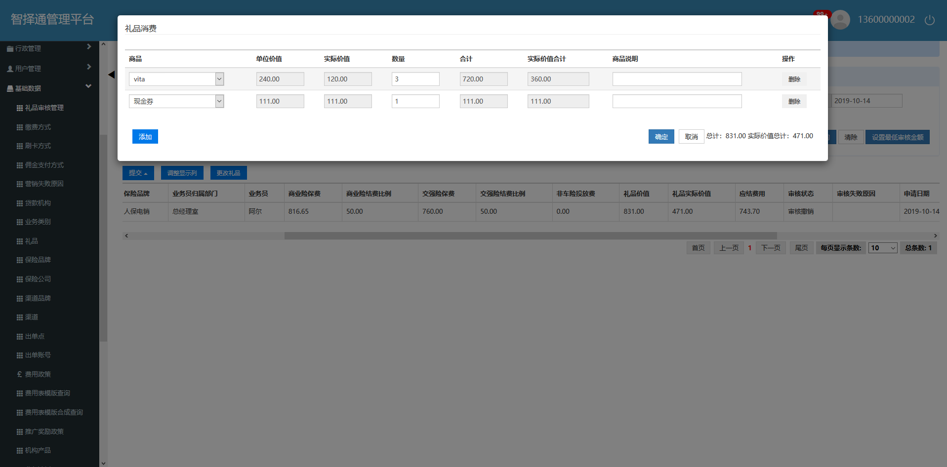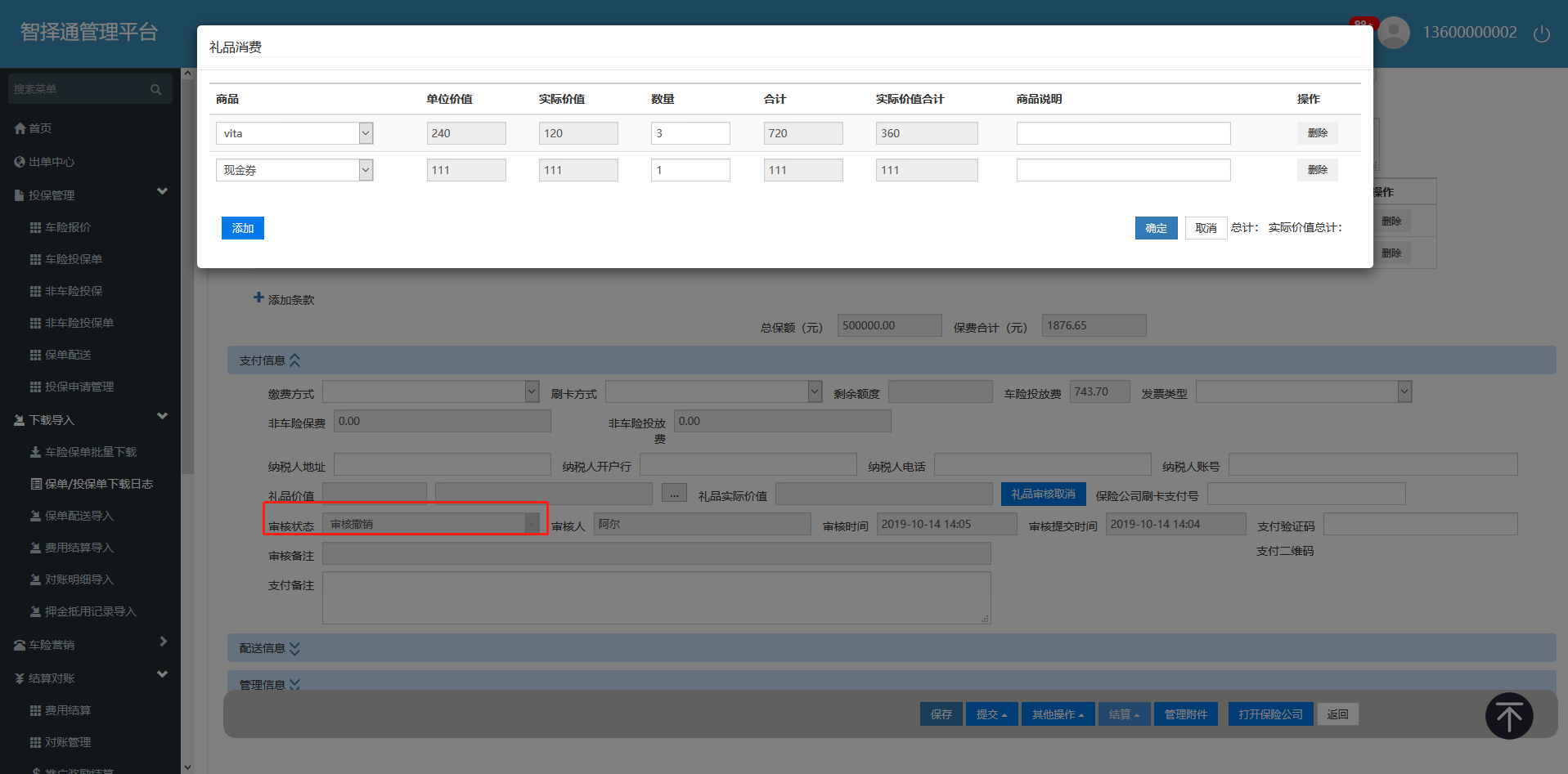 【出单中心2.0-人保电销】在礼品审核管理或投保单中撤销审核,点击更改礼品,礼品选择框中还在显示之前的礼品。