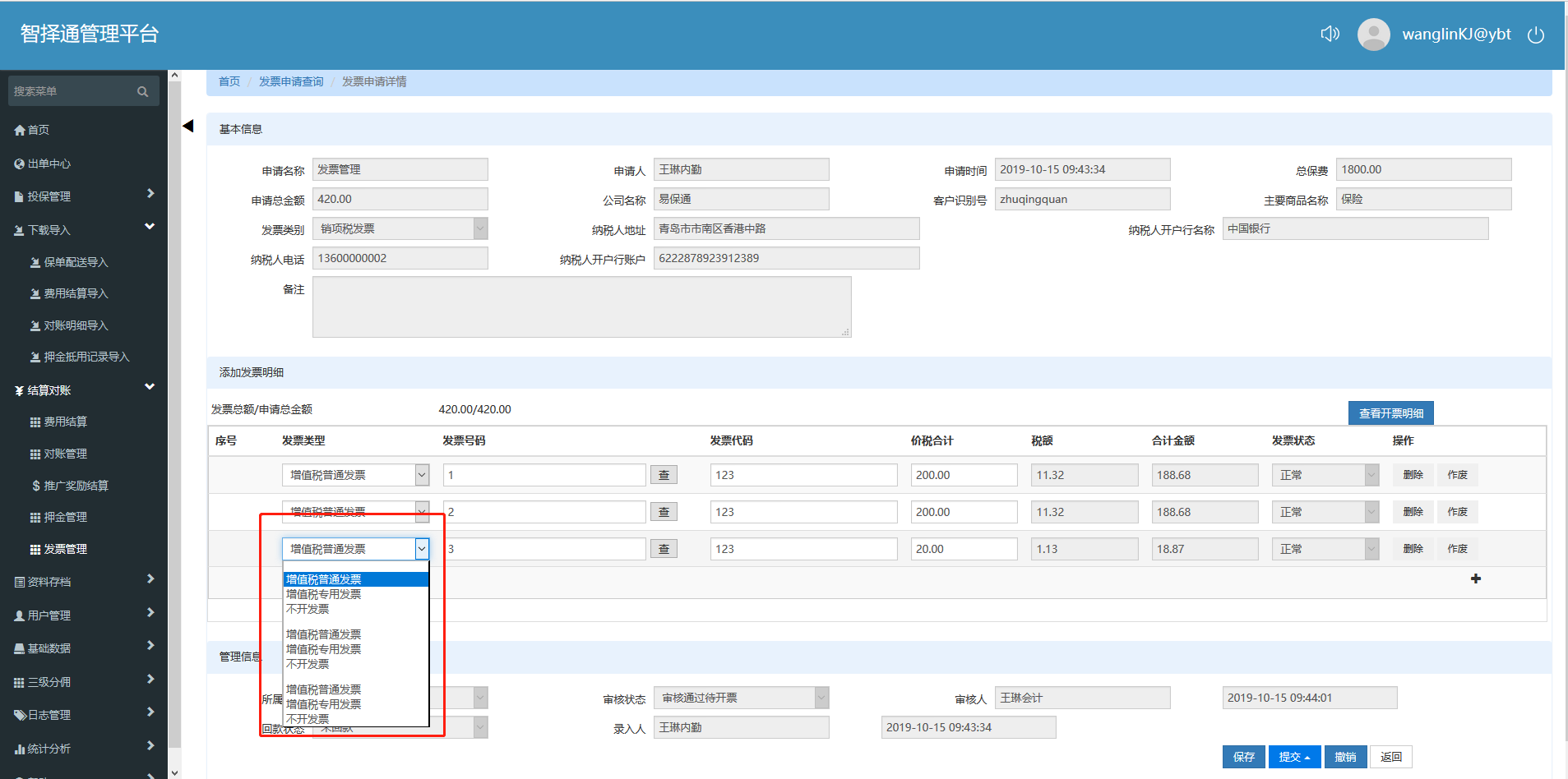 【捷顺-发票管理】修改发票类型,下拉框显示异常。
