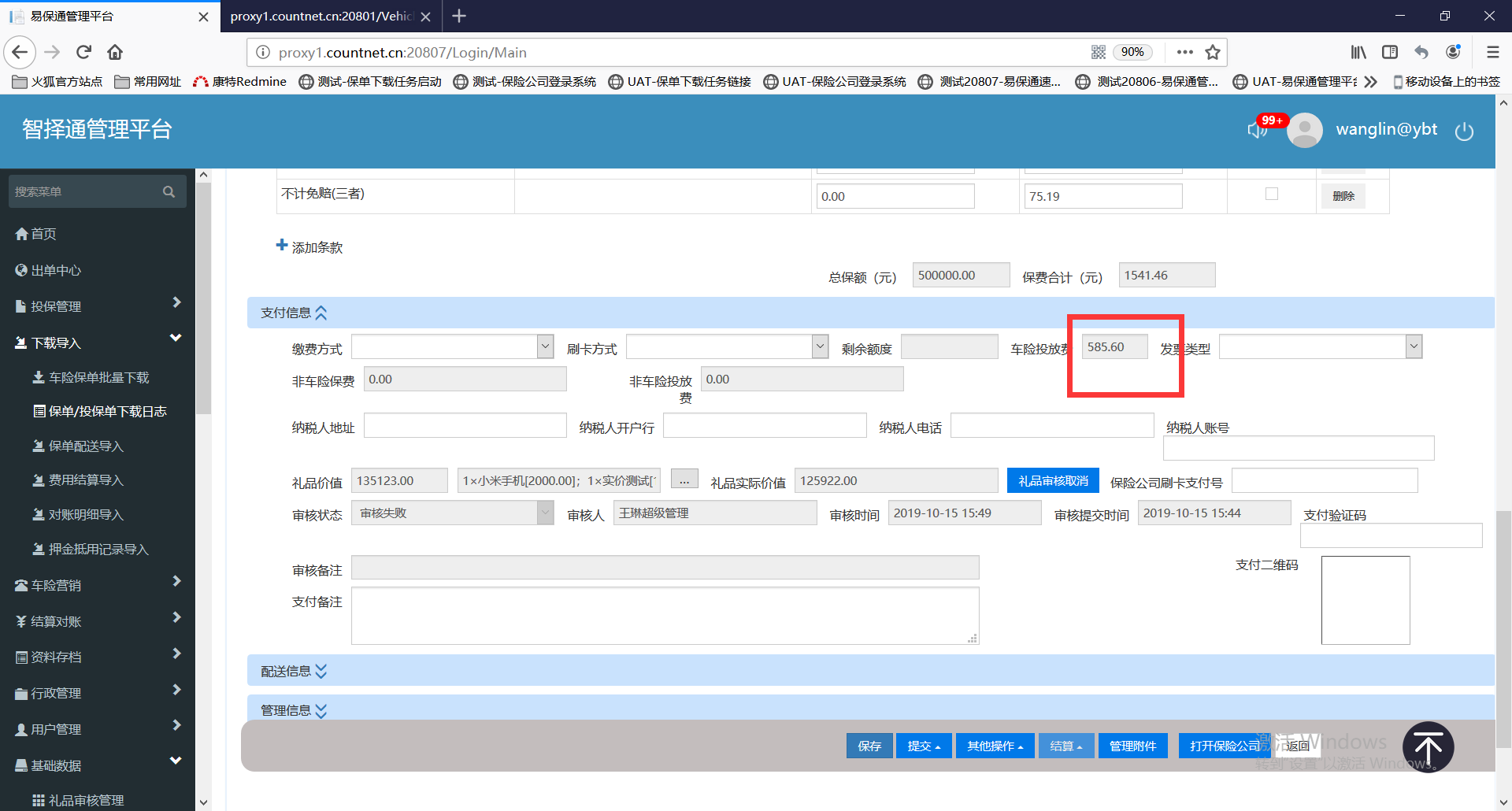 【出单中心2.0-人保电销】礼品审核管理中的应结费用和投保单内的投放费显示 不一致,见附图