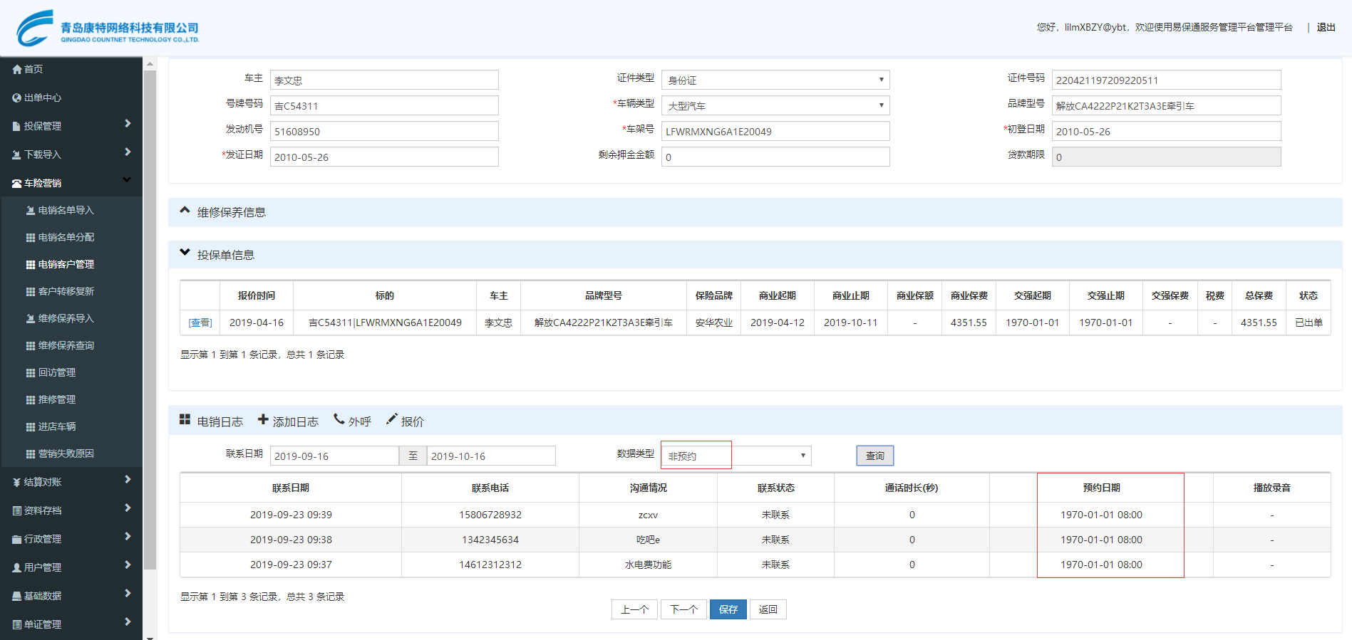 电销客户管理编辑页面,电销日志查询时,查询条件为非预约,显示预约日期为1970-01-01 08:00