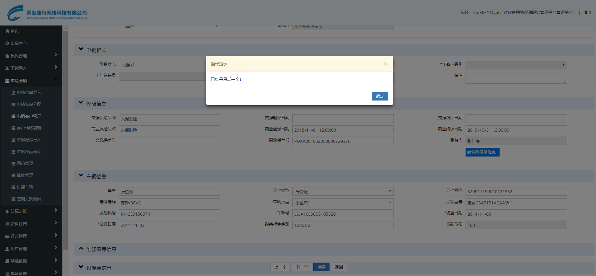 电销客户管理编辑页面,点击下一个,在最后一个电销客户编辑页面点击保存时,提示已经是最后一个