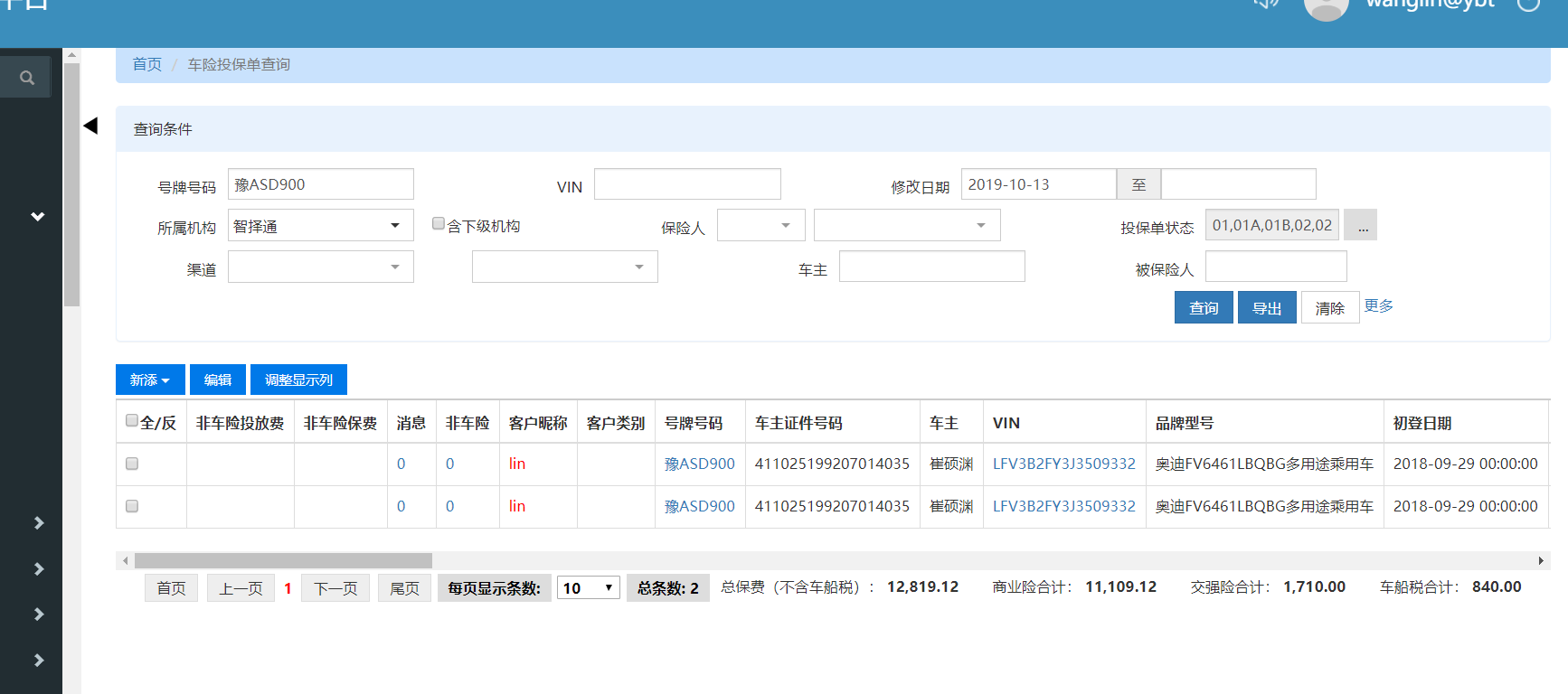 测试车辆:豫ASD900 原投保单ID:b0b4ef871ba04937852290fcd88c3095 新增的投保单ID:5a923df35b374d3cab75958e7f9269f7