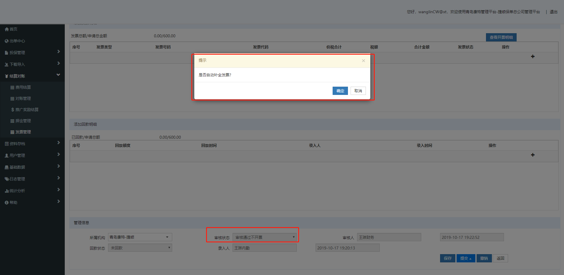 【捷顺-发票管理】UAT环境,审核通过不开票状态的发票点击添加明细的+也可以添加明细,且会提示是否补全发票。