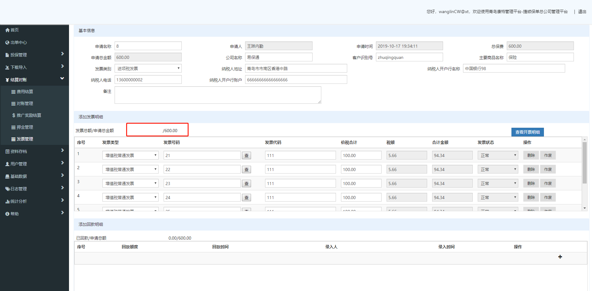 【捷顺-发票管理】UAT环境,发票状态为审核通过待开票,添加明细后点击保存,发票总额不显示。