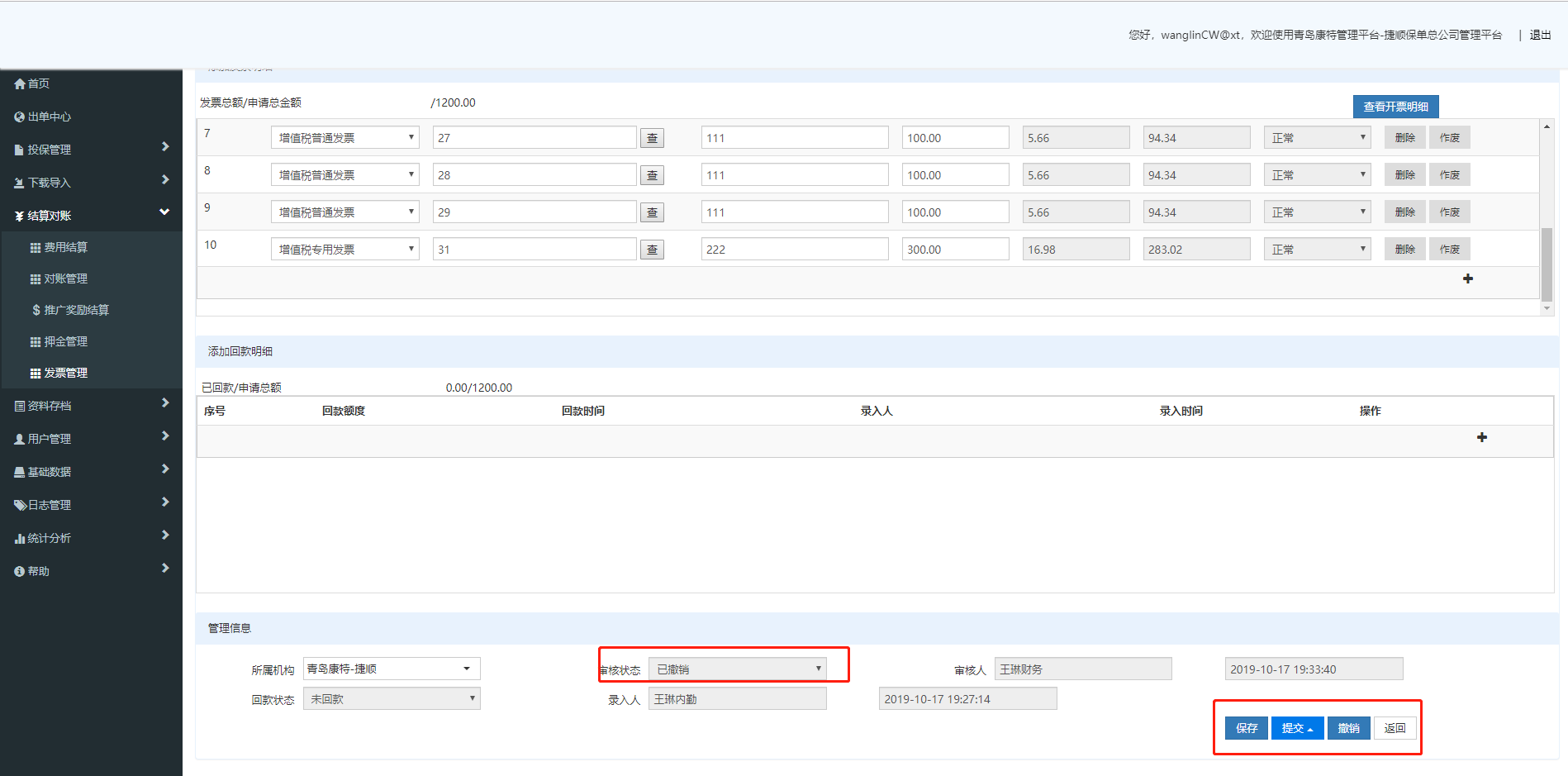 【捷顺-发票管理】UAT环境,已撤销的发票还在显示保存、提交和撤销按键。
