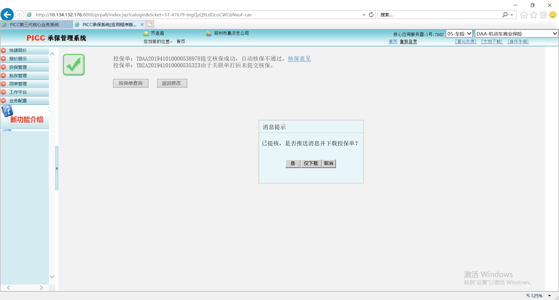 【出单中心2.0-人保三代】核保不通过不要提示是否下载投保单,如果想去下载核保失败的,可以便捷下载。