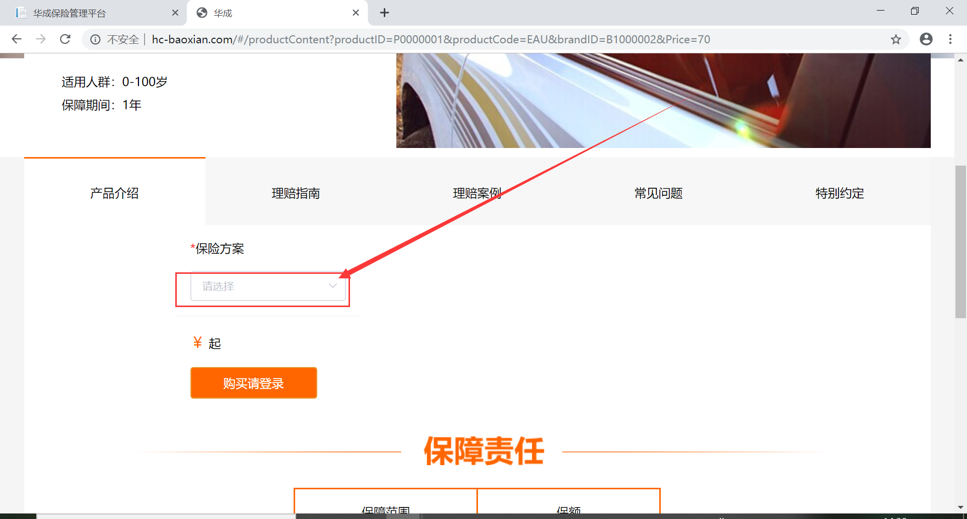 1、选择产品进入详情页面无法选择方案,c/s投保单详情页面【其他操作】能够选择方案。