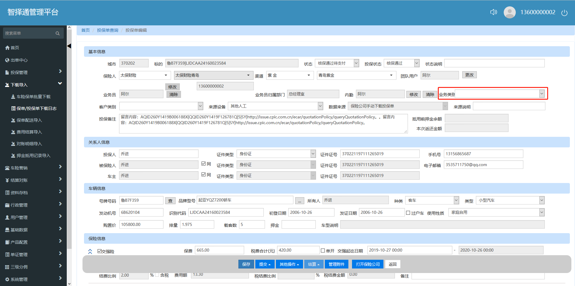 【出单中心2.0新太保】便捷下载投保单,第二次下载时选择业务类别,下载后业务类别不显示