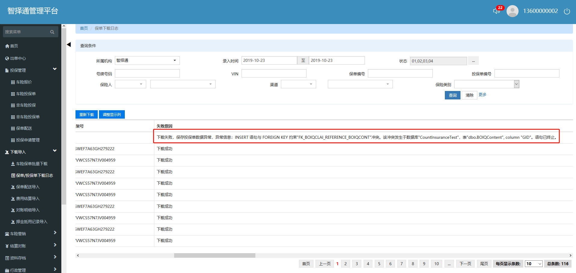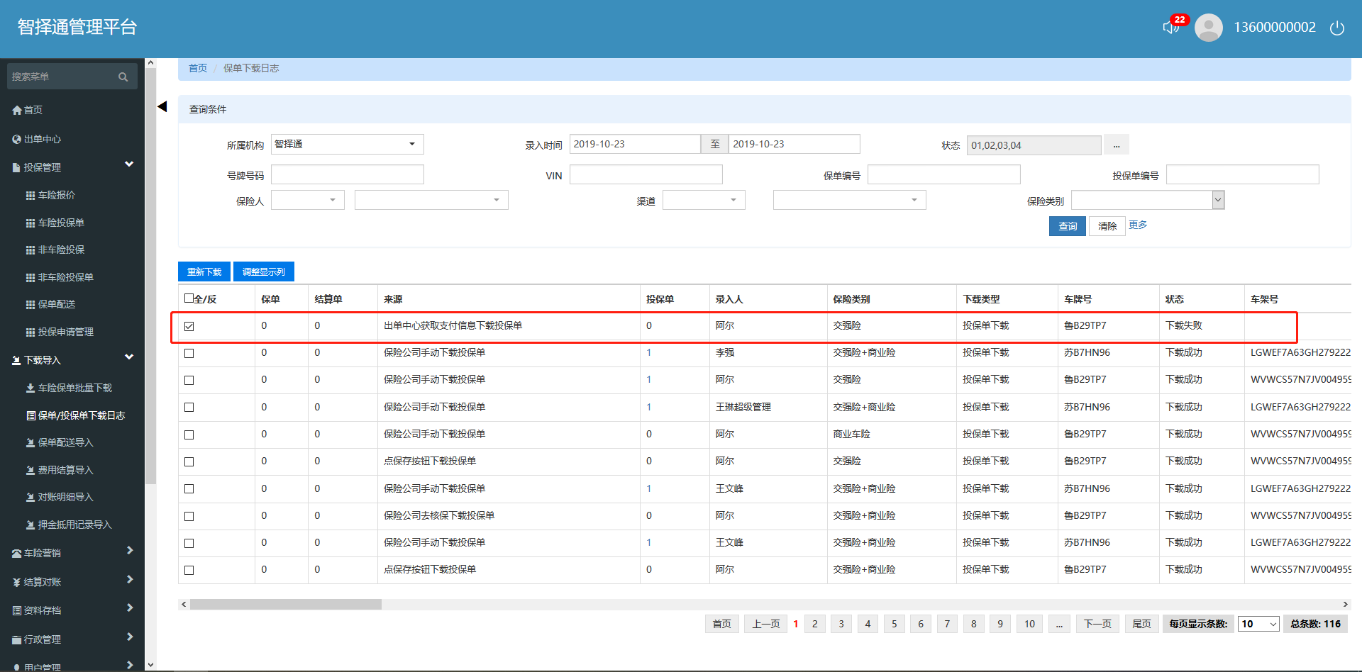 【出单中心2.0新太保】从投保单中‘打开保险公司’进入保险公司系统进行支付申请并下载投保单(此单单交强险),下载日志中下载失败。