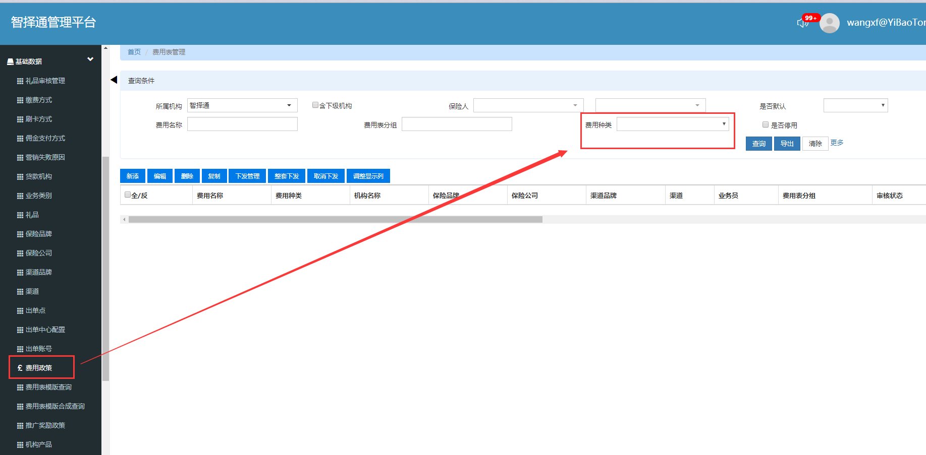 财务需设置个别财务账号无法查看到“手续费比例”所对应的费用政策表。