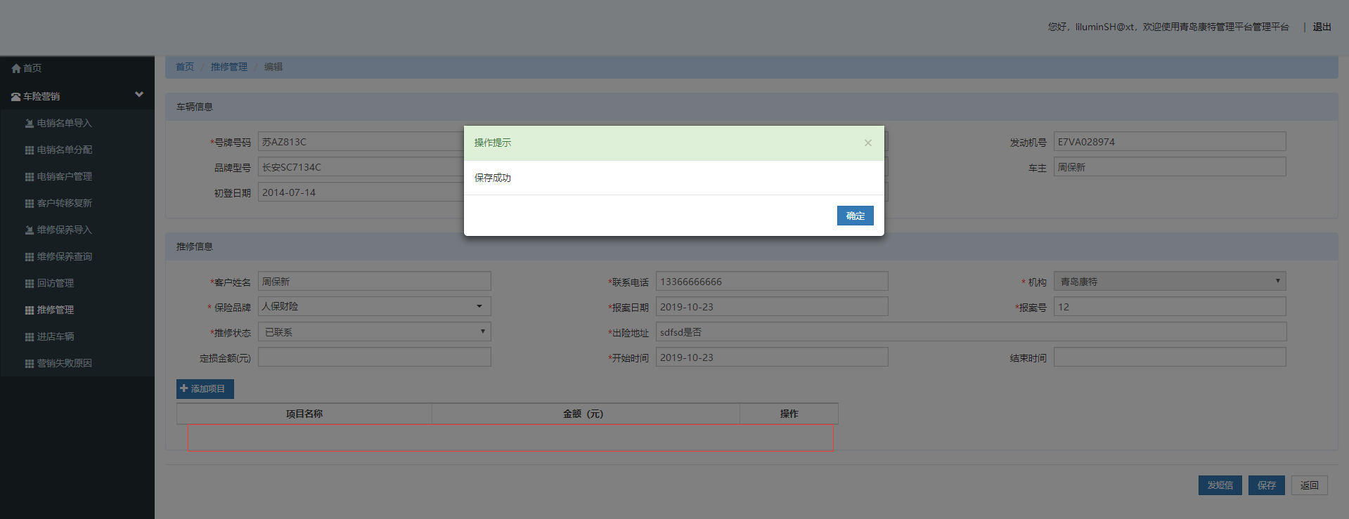 推修管理新增界面,没有添加项目信息(项目信息为必填项),点击保存可以保存成功