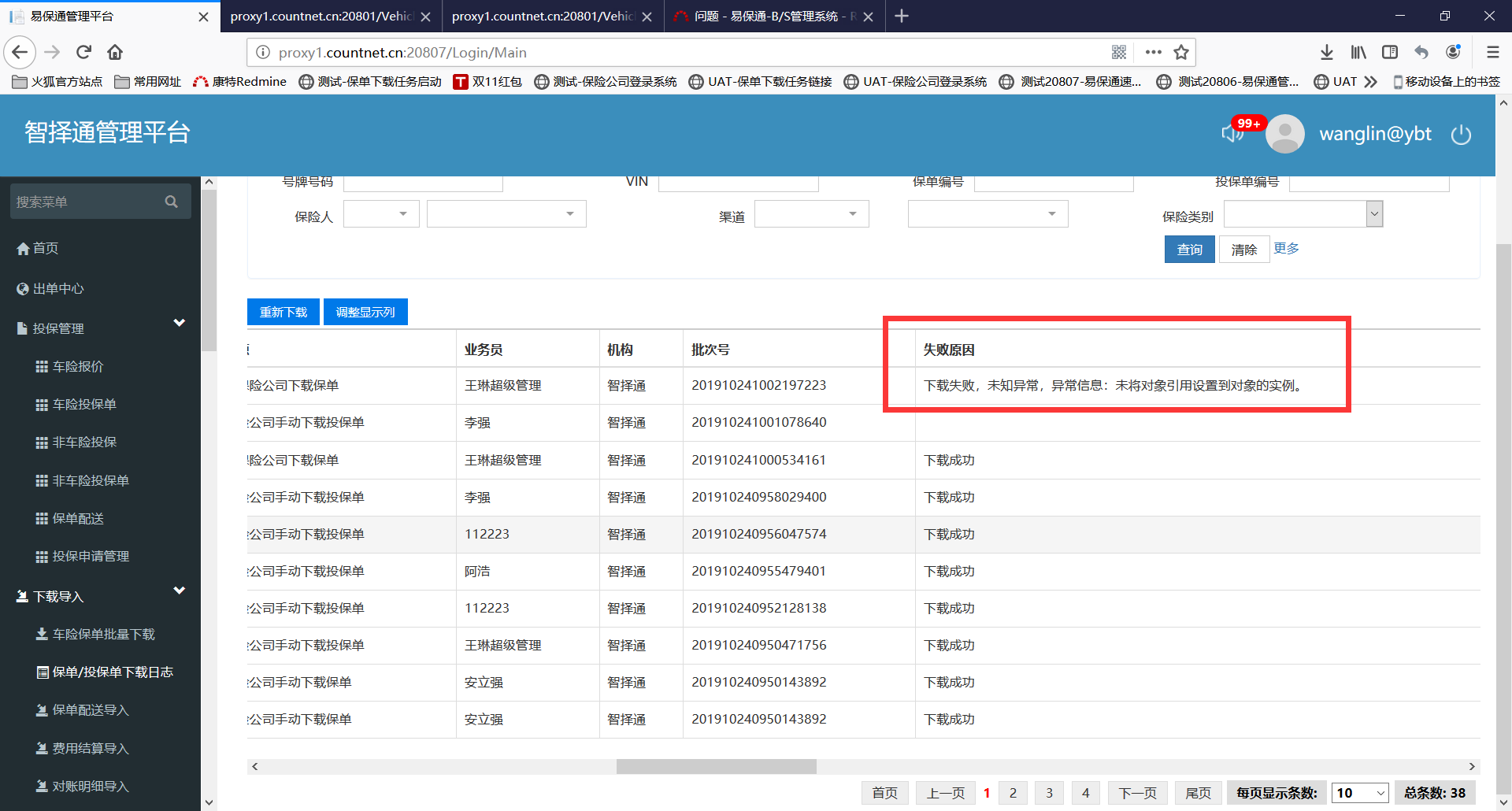 【出单中心2.0-人保电销】从保险公司下载保单时, 选择不生成投保单,下载失败,失败原因见附图