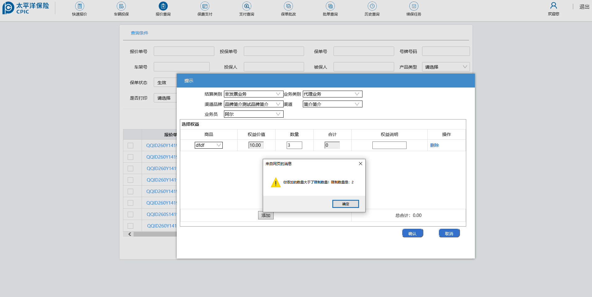 【出单中心2.0新太保】便捷下载保单,选择礼品,填写礼品数据大于限制数量,提示后并不会把一天数量清空,点击确定并能正常下载。