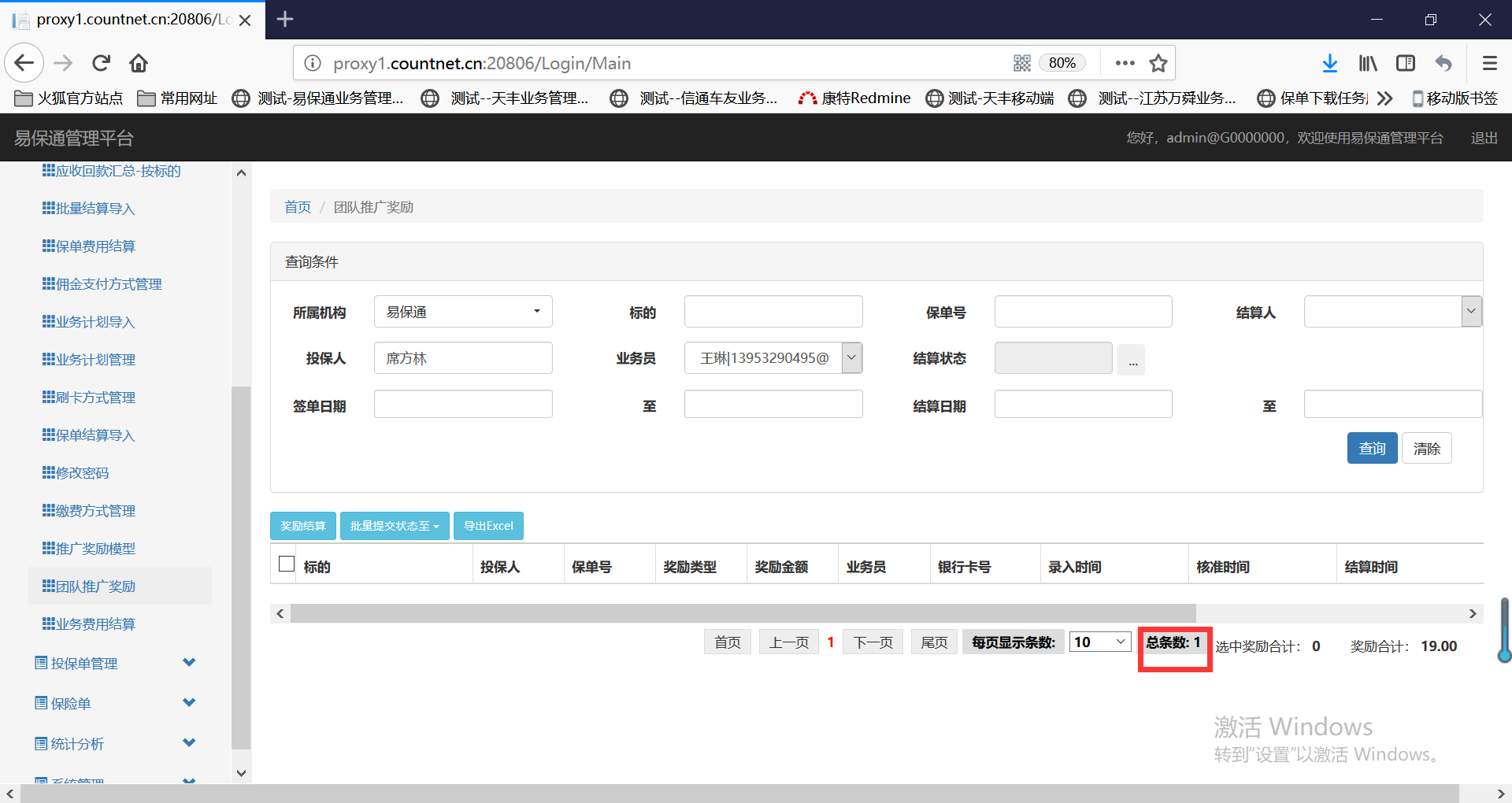 步骤:列表中查询出15条数据,翻页查看后,再次设置查询条件,若查询的数据只有1条,列表会出现不显示的情况,总数量会显示。见附图