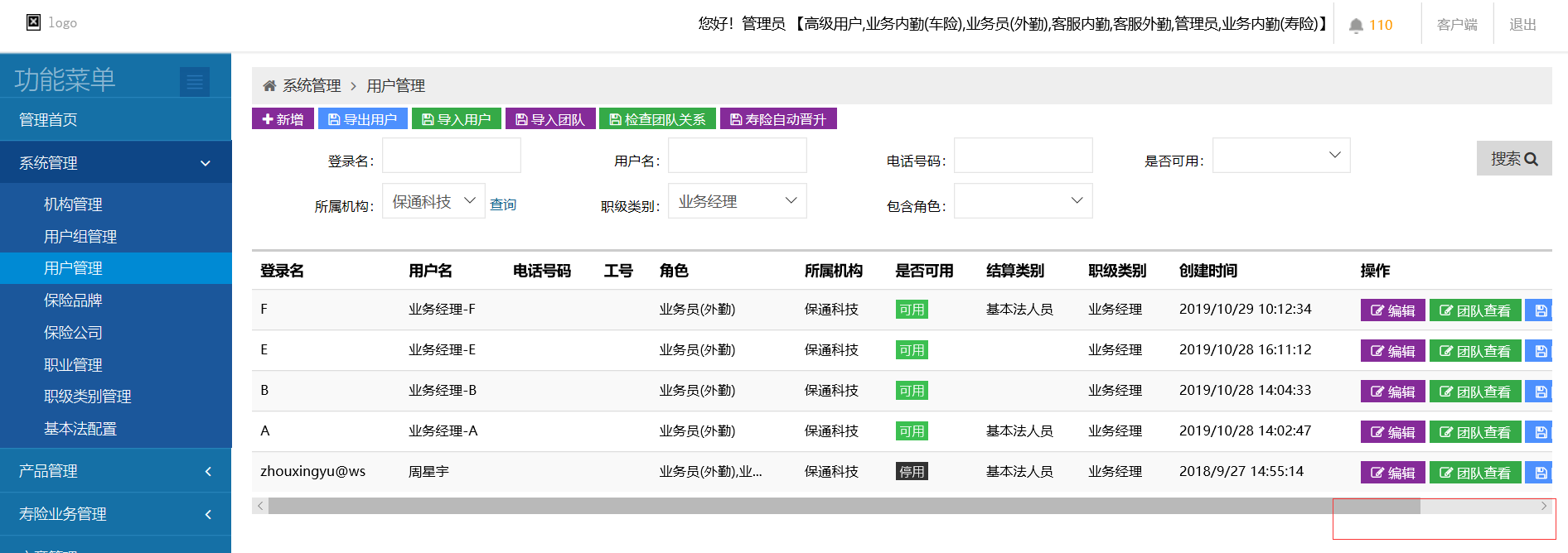 【系统管理】用户管理,用户管理查询数据,右下方不显示查询条数