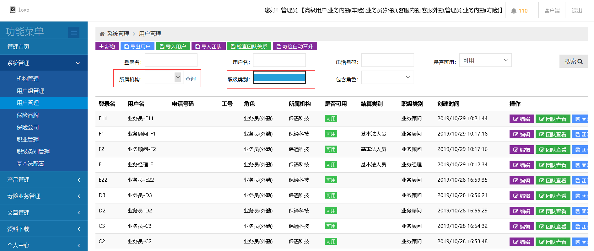 用户管理,查询条件所属机构为空时,职级类别下拉没有数据