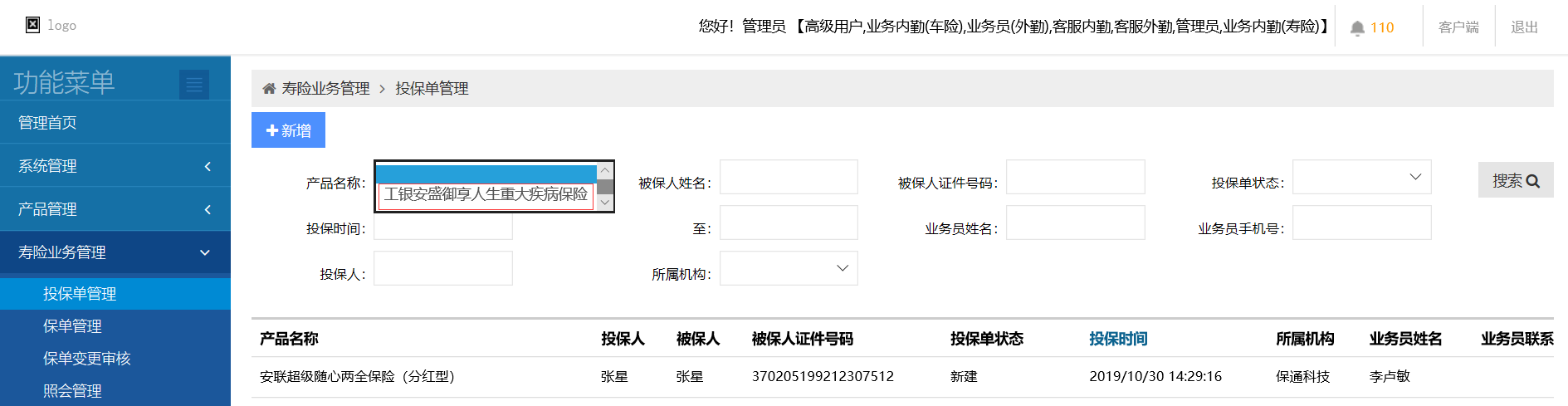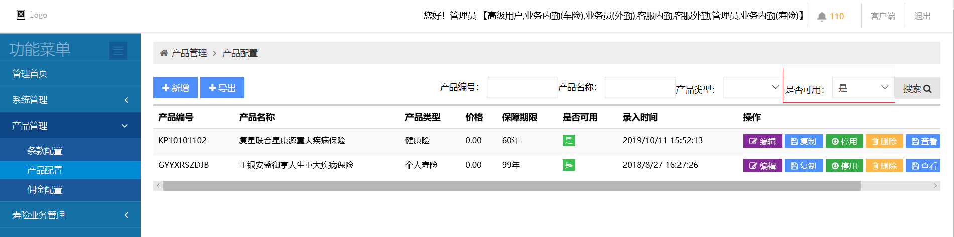 存在两条可用的产品,投保单管理查询条件产品名称只显示一条