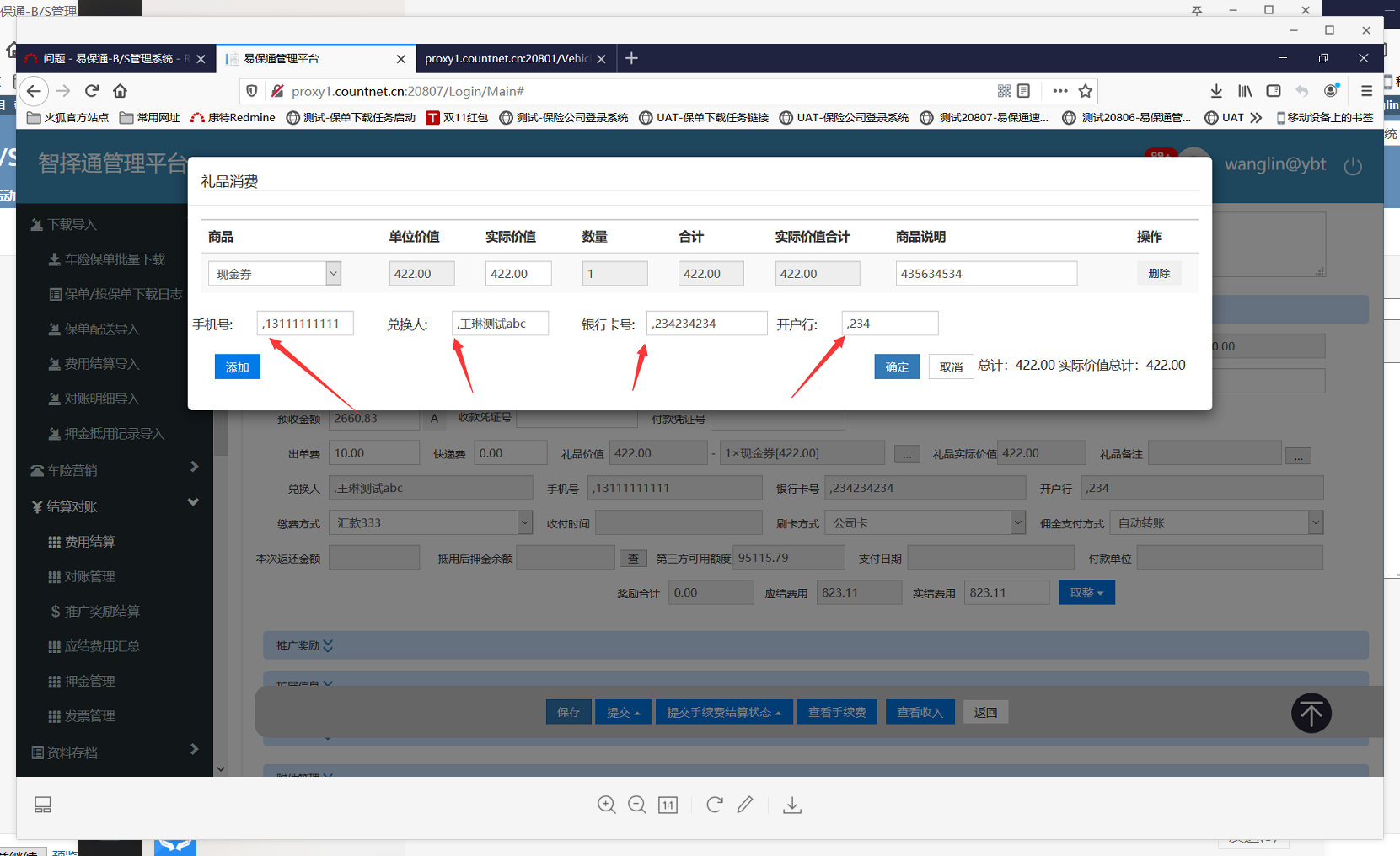 经测试,在快速结算页面,兑换人信息就不对