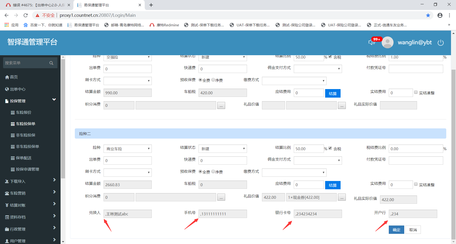 【出单中心2.0-人保电销】快速结算生成的结算单,兑换人信息显示不对,见图