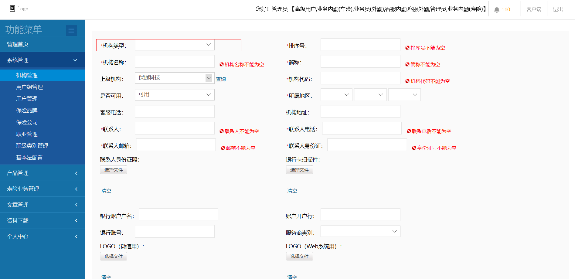 新增机构界面,直接保存-机构类型为必填项没有提示上级机构为必填项没有※号标识