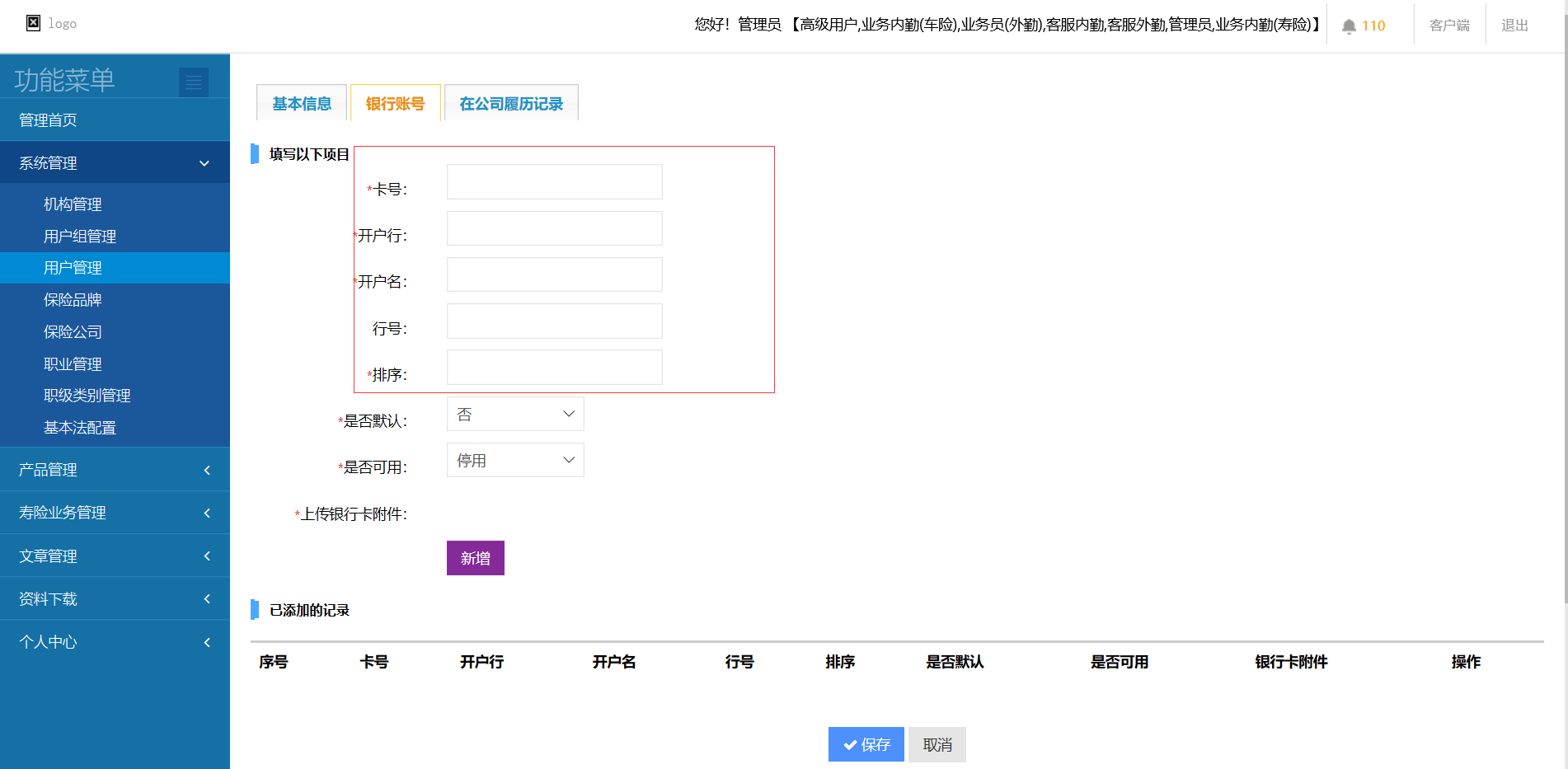 用户管理,用户管理编辑页面编辑银行卡号,输入信息后保存,再次进入编辑信息被清空编辑在公司履历记录后保存,再次进入同样被清空