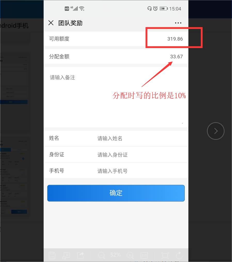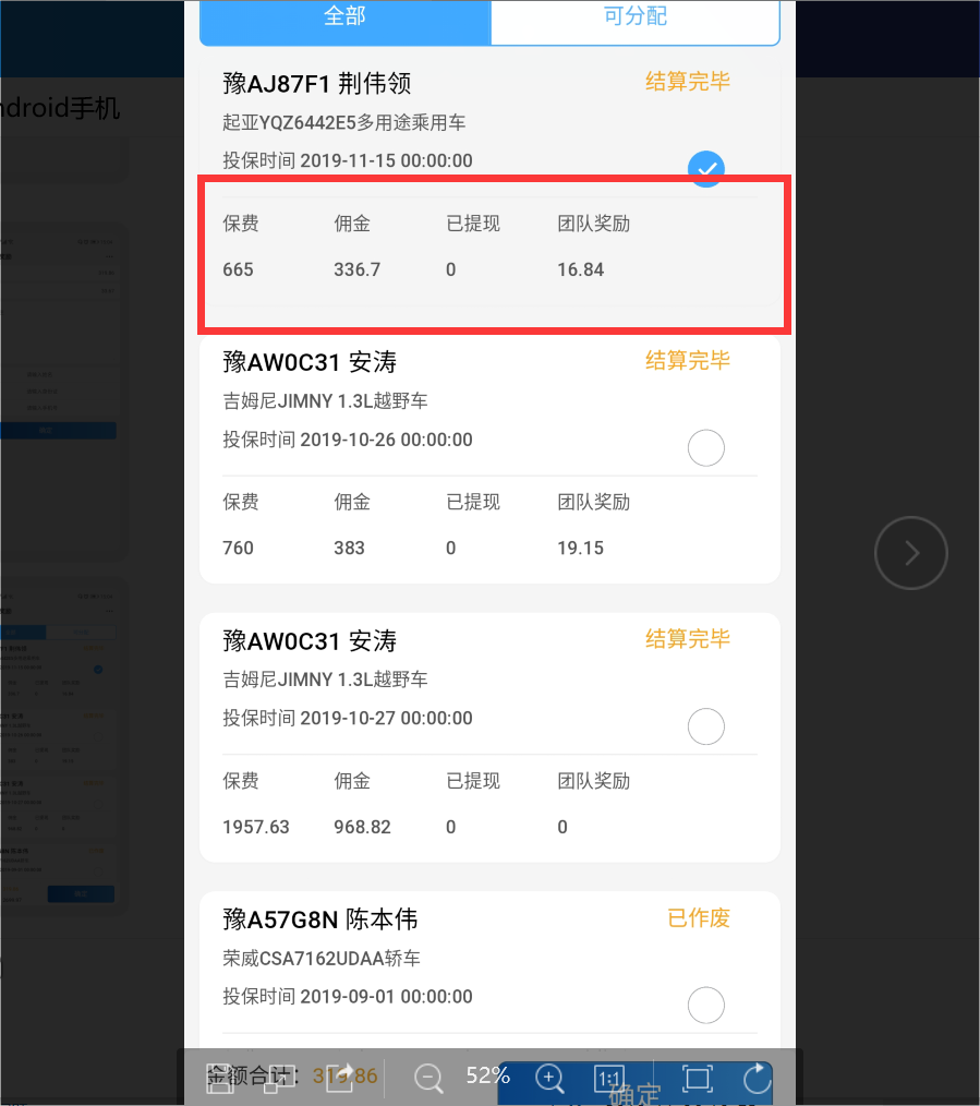 1. 结算单的佣金见附图,已经分配了一部分2. 再次分配时,输入的比例是10%,但是分配金额是按照原佣金算的,应该按照可用额度算