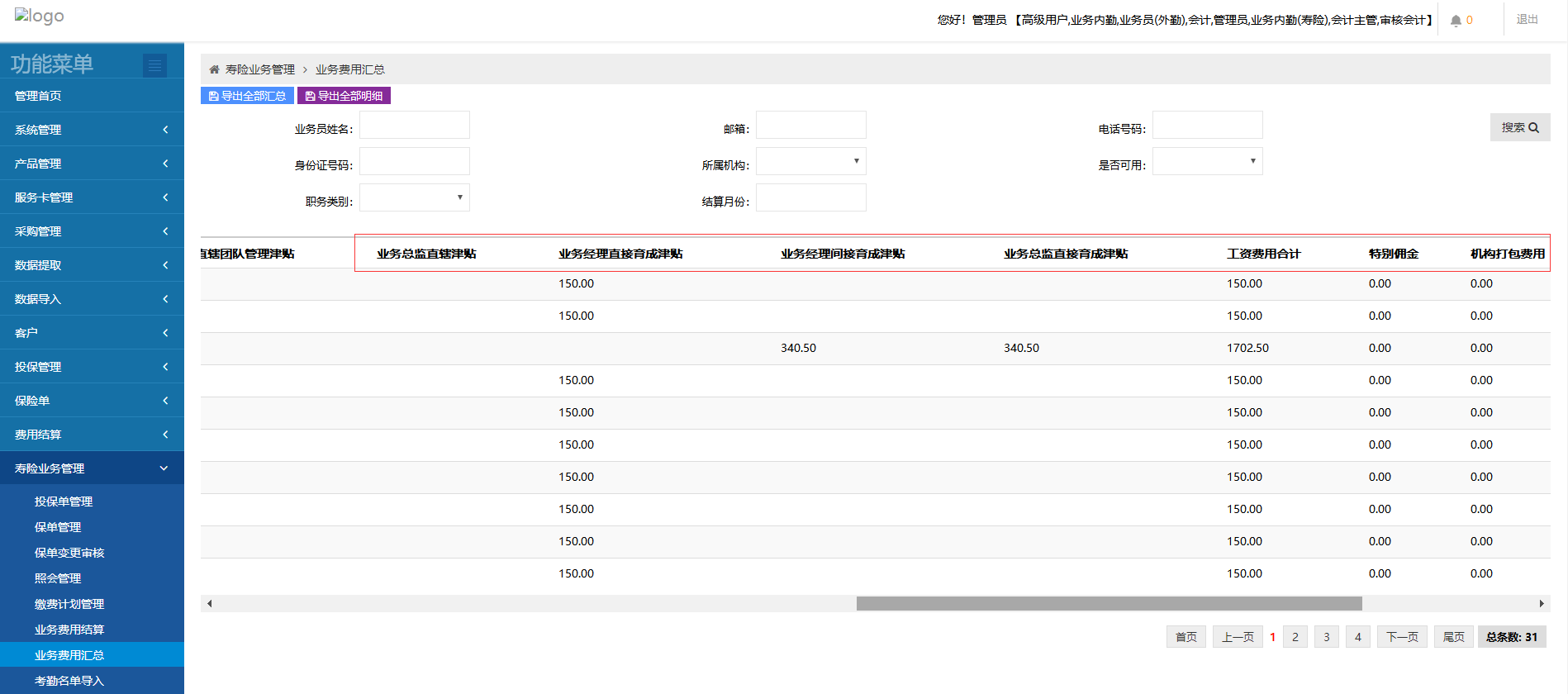 业务费用汇总,显示列与条款配置结算科目显示不一致