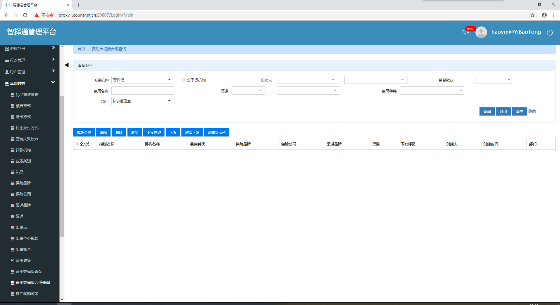 【费用模板】费用表模板合成查询,点击清除按钮后,点击查询,部门自动变为总经理室
