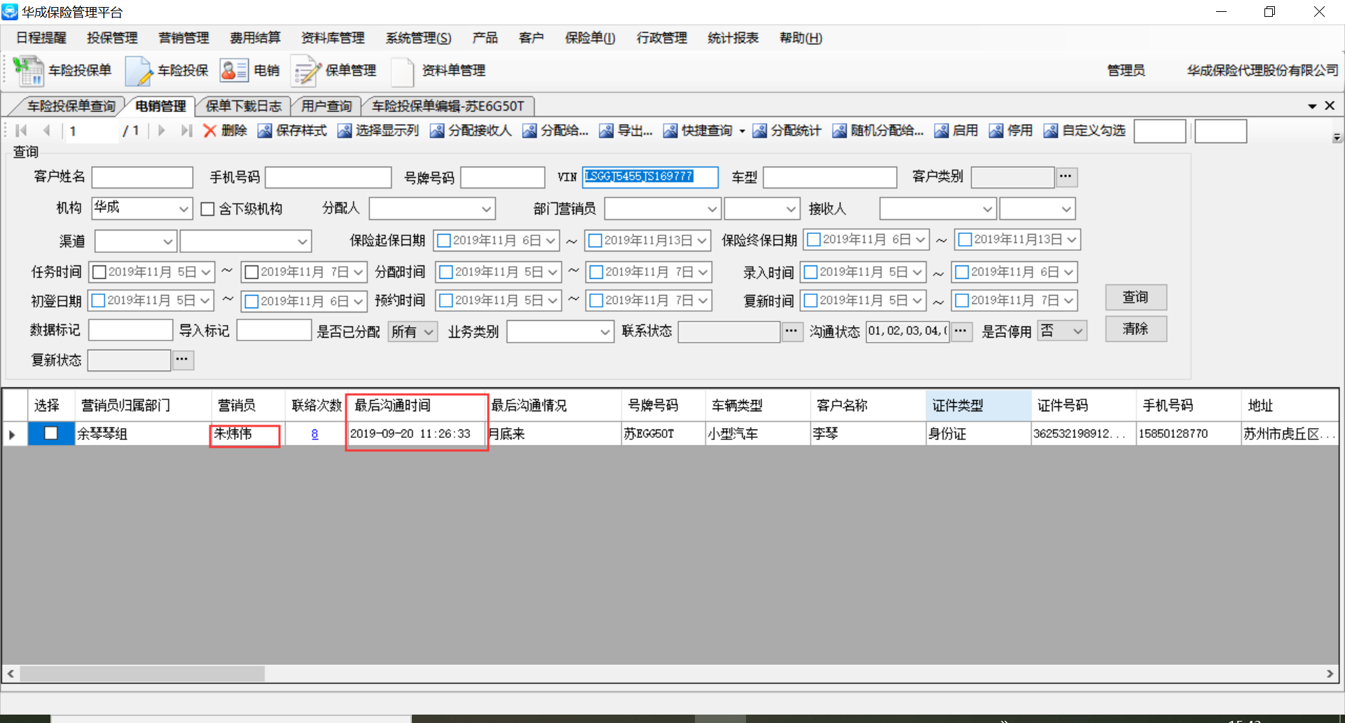 在华成系统内查到电销名单营销员与投保单业务员不一致原因如下