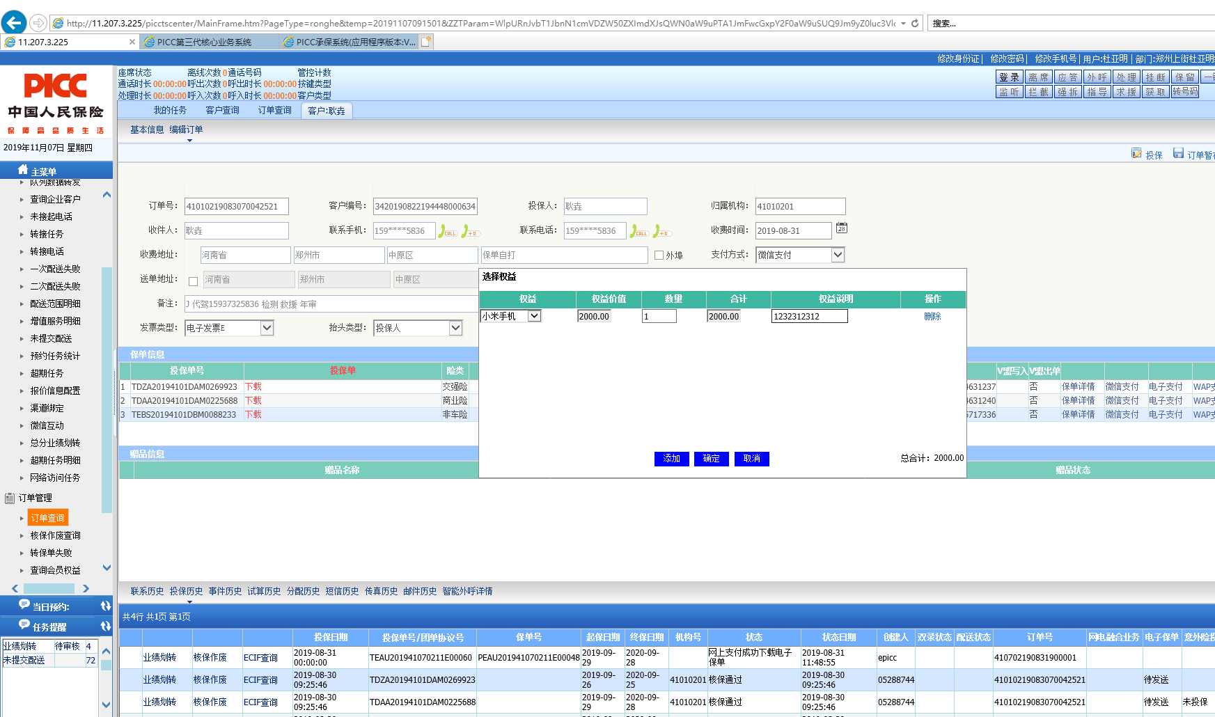 易保通-核心服务 - 优化 #3946: 【出单中心2.0】人保电销系统优化