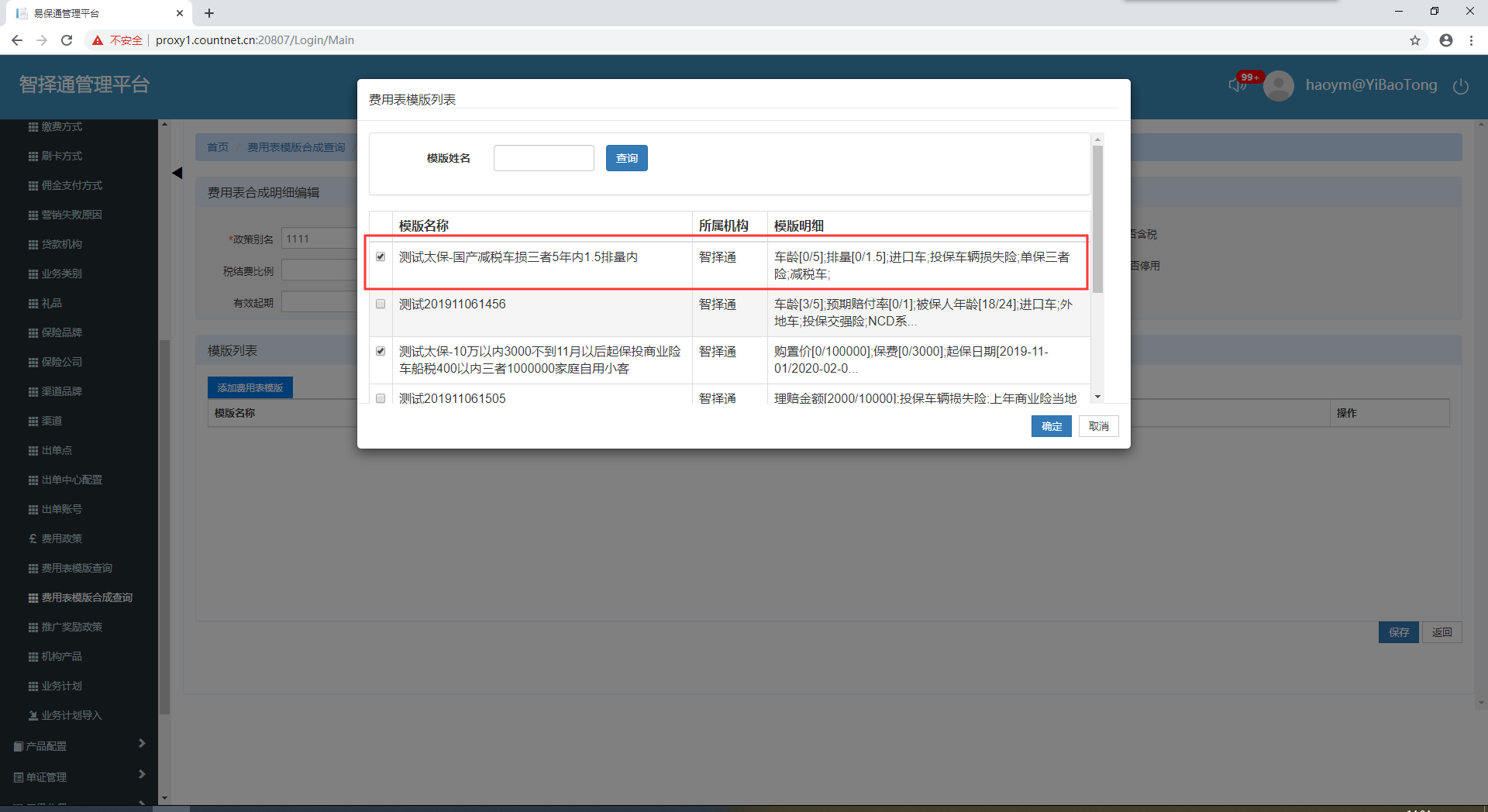 【费用模板】费用表模板合成查询,新添模板合成,添加费用模板时有些模板添加不上