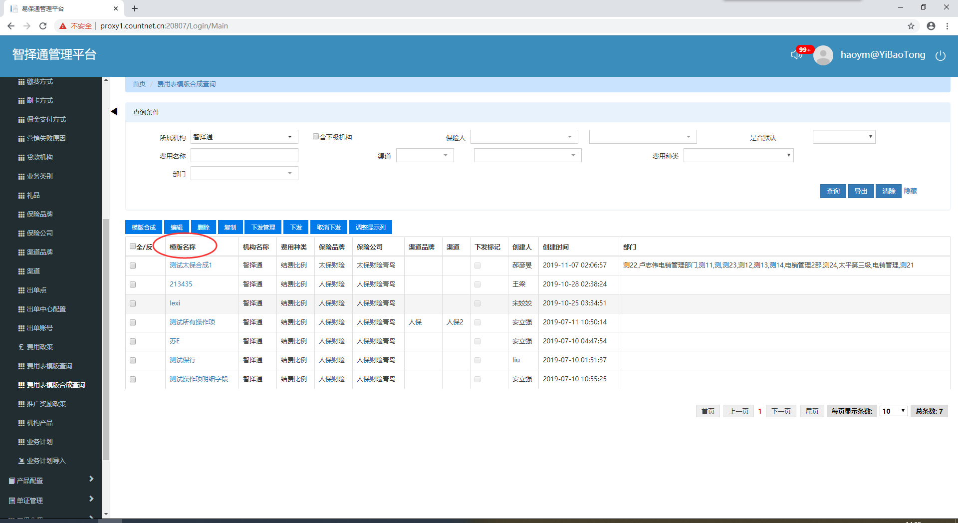 【费用模板】费用表模板合成查询,查询列表模板名称应该显示为费用名称