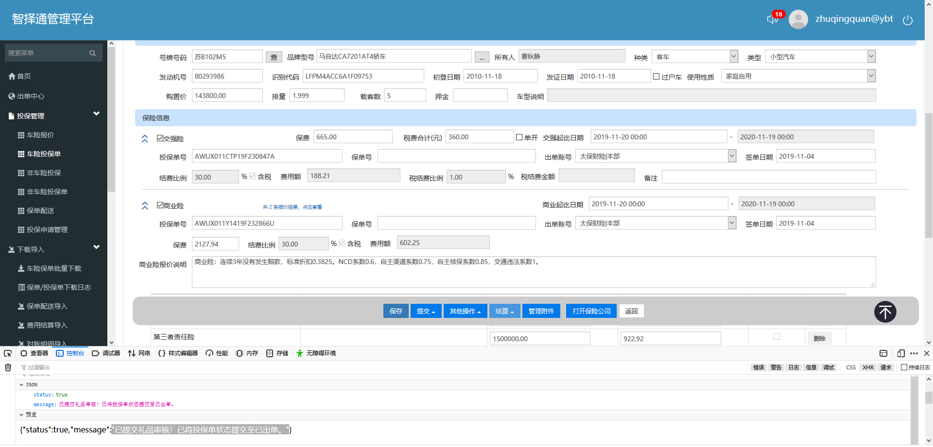经测试,投保单内已经修复。但是在礼品审核管理中,仍会将该投保单提交到已出单状态。