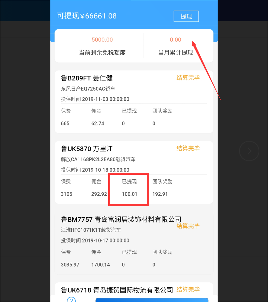 结算有提现记录,但是当月累计提现没显示金额