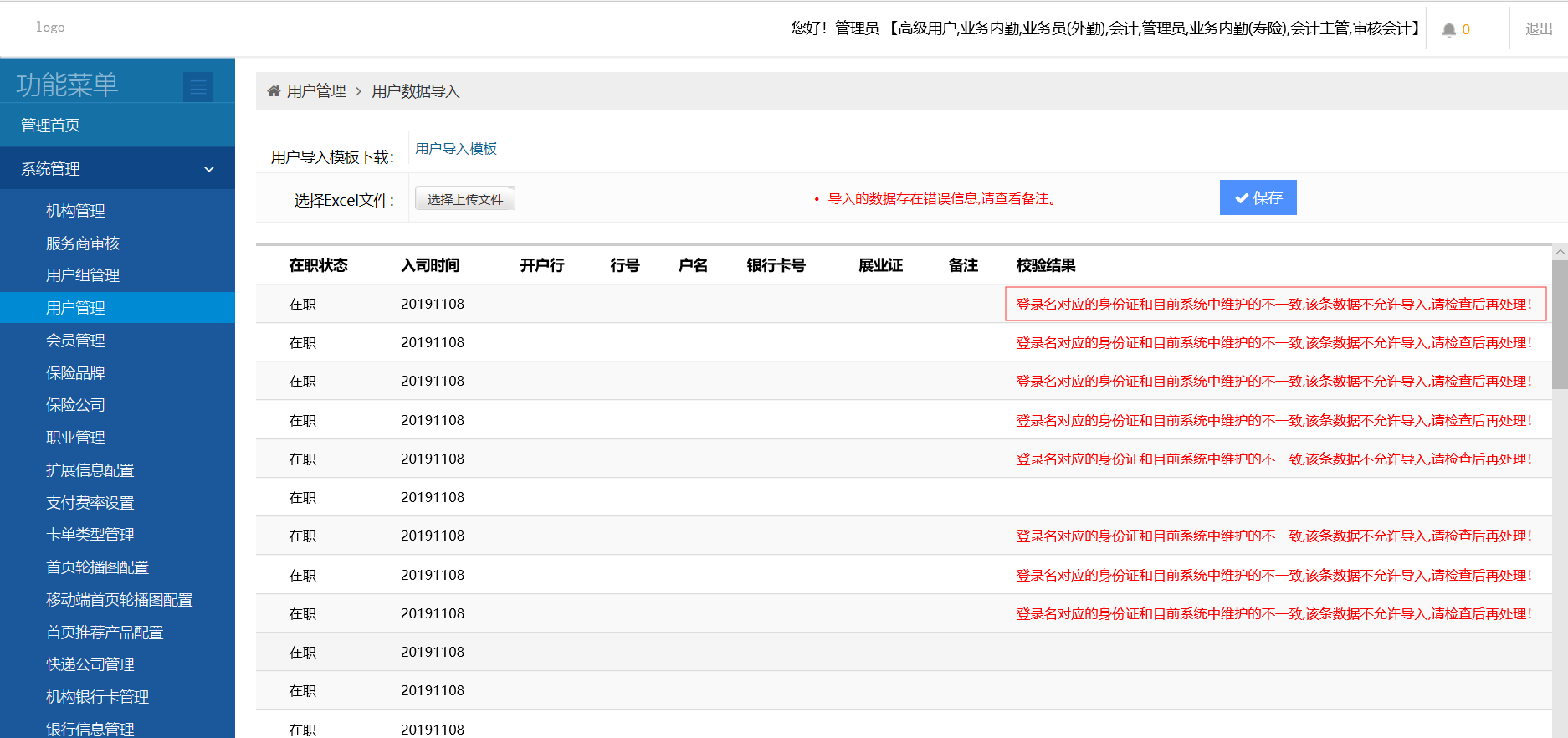 导入用户,登录名对应的身份证为空,但提示与系统中维护的不一致备注:登录名为G