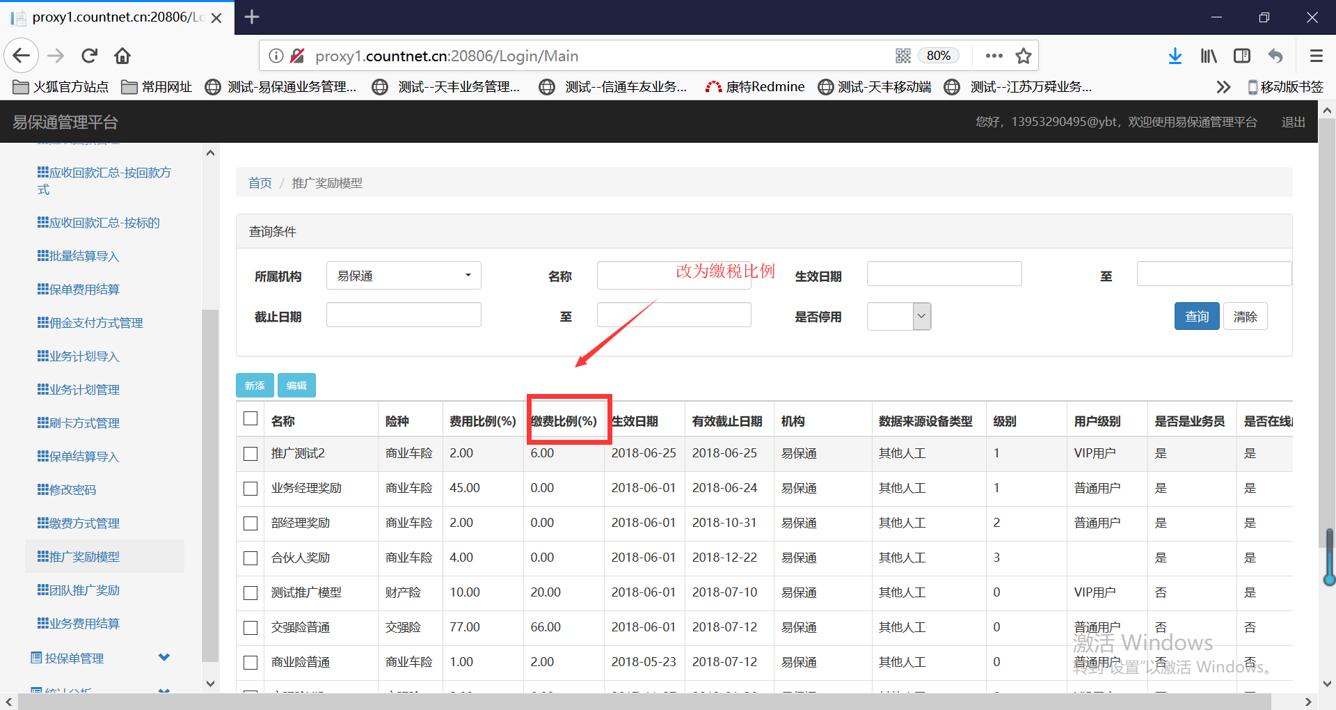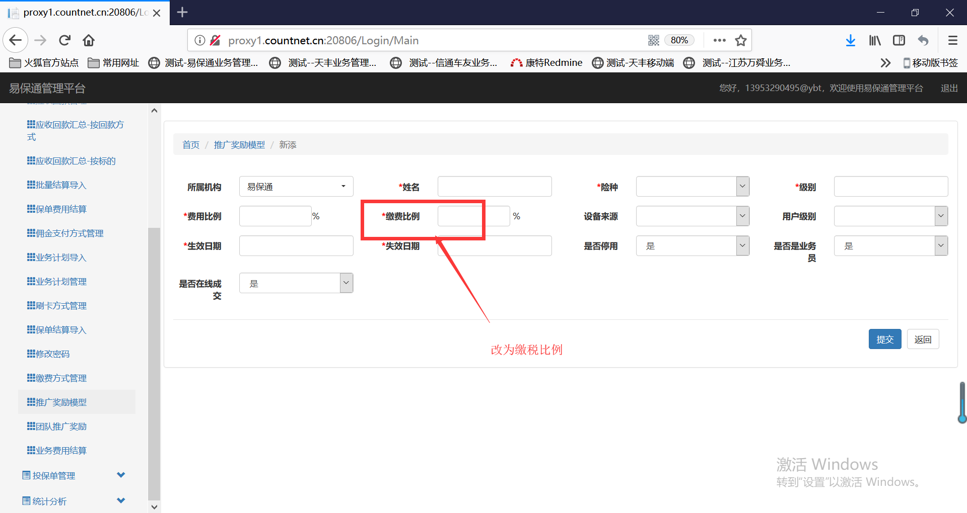 【速成高级版】推广奖励模型,“缴费比例”改成“缴税比例”,列表头和编辑页面都需更改
