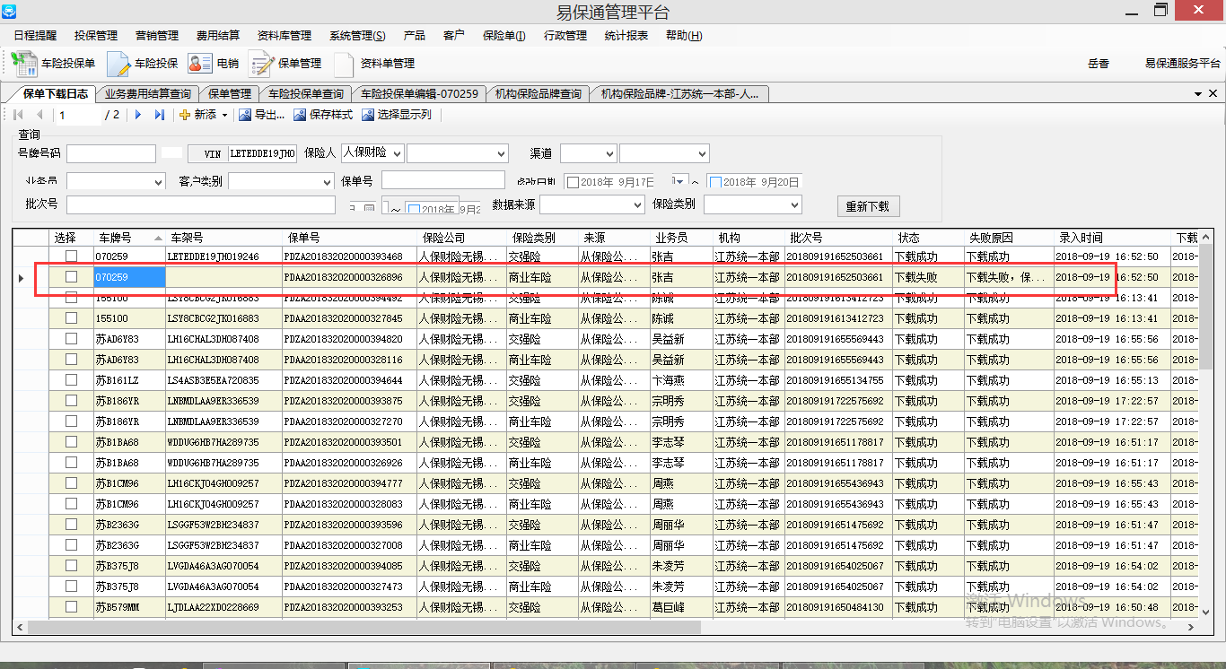 【江苏统一】保单下载失败提示“下载失败,保存保单数据异常,异常信息:检测到更改之间发生冲突。尝试插入具有相同键的多个实体时可能会发生这种情况。”