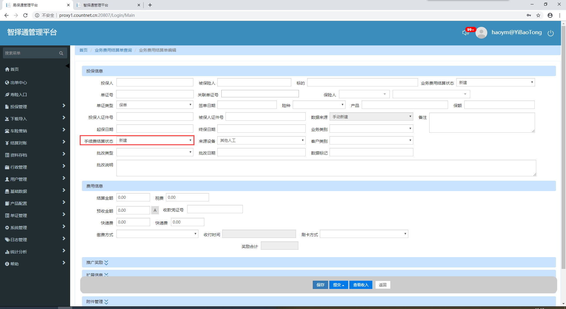 【测试环境】报行合一权限账号优化,结算单编辑页面中的推广奖励和手续费状态应去掉