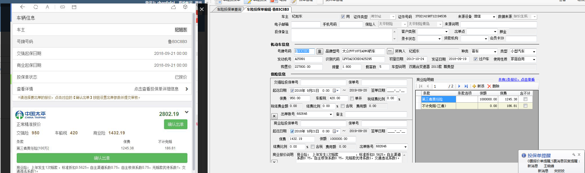 【安达】太平报价成功但是保险公司内没有生成暂存单