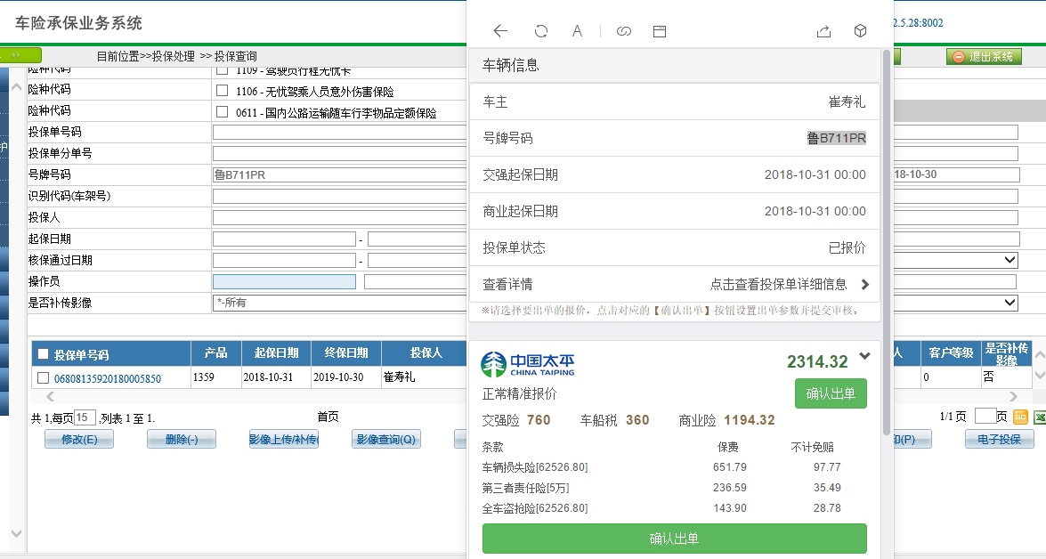 太平报价成功但是在保险公司内无法生成暂存单
